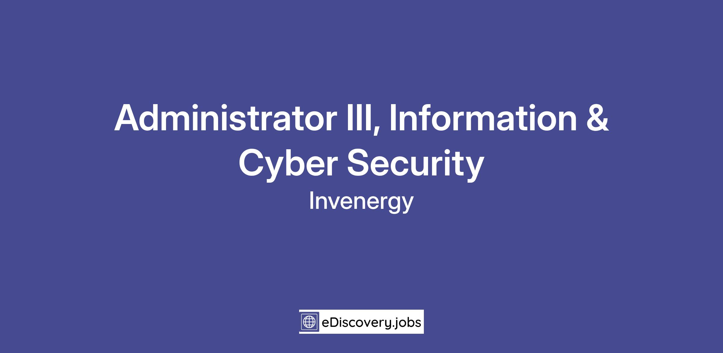 The Administrator III, Information & Cyber Security will build and maintain the data protection policies and monitoring within Microsoft Purview for all Invenergy data, i.e. email, Teams, Sharepoint, etc. The data protection administrator will also work with the Legal and Compliance groups to perform eDiscovery and to apply data protection labels and retention schedules.