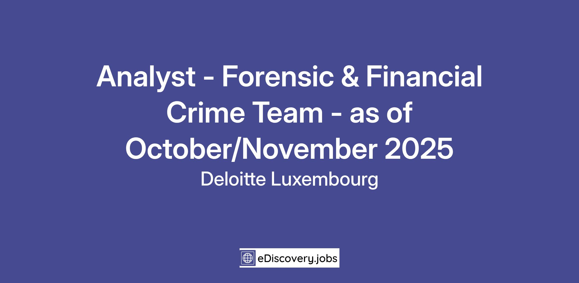 Analyst - Forensic & Financial Crime Team - on site - full time
