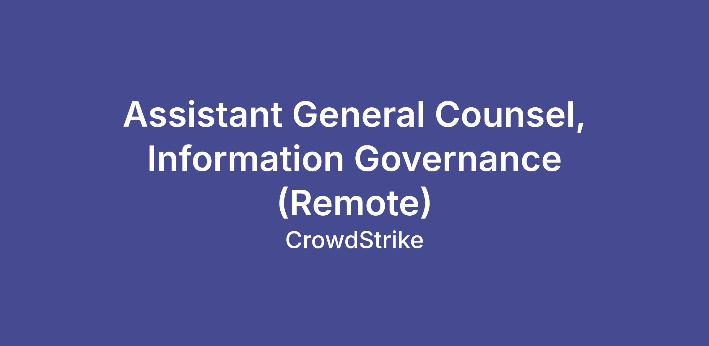 CrowdStrike is seeking an Assistant General Counsel, Information Governance based in the United States to support the company’s evolving governance needs across AI, data, and enterprise information systems. This senior role reports directly to CrowdStrike’s privacy leadership.