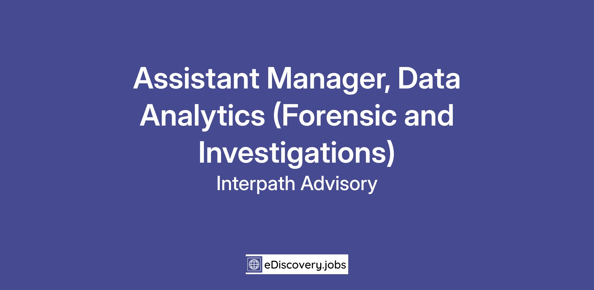 Assistant Manager, Data Analytics (Forensic and Investigations)
