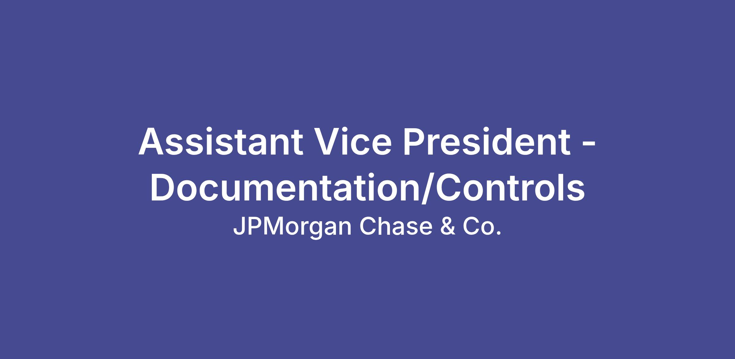 This Legal Discovery Management AVP will own and/or support the Documentation & Controls program, ensuring policy‑aligned documentation, effective controls, and transparent reporting in accordance with JPMC’s risk and control framework.