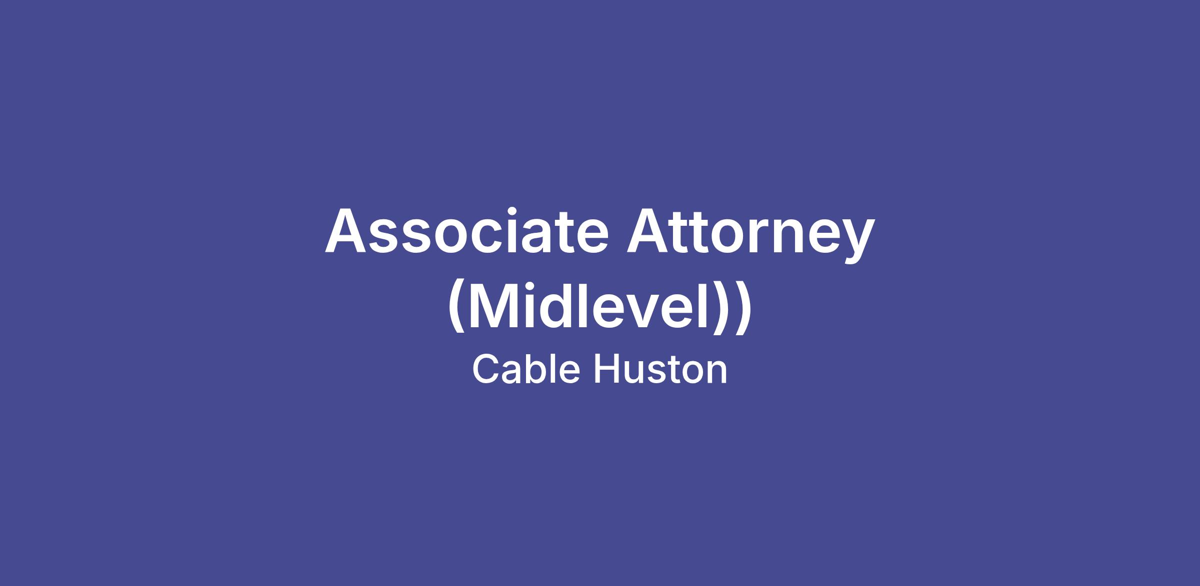 Cable Huston is seeking an attorney with 3β5 years of experience. This position includes a mix of general civil litigation and employment cases.Β