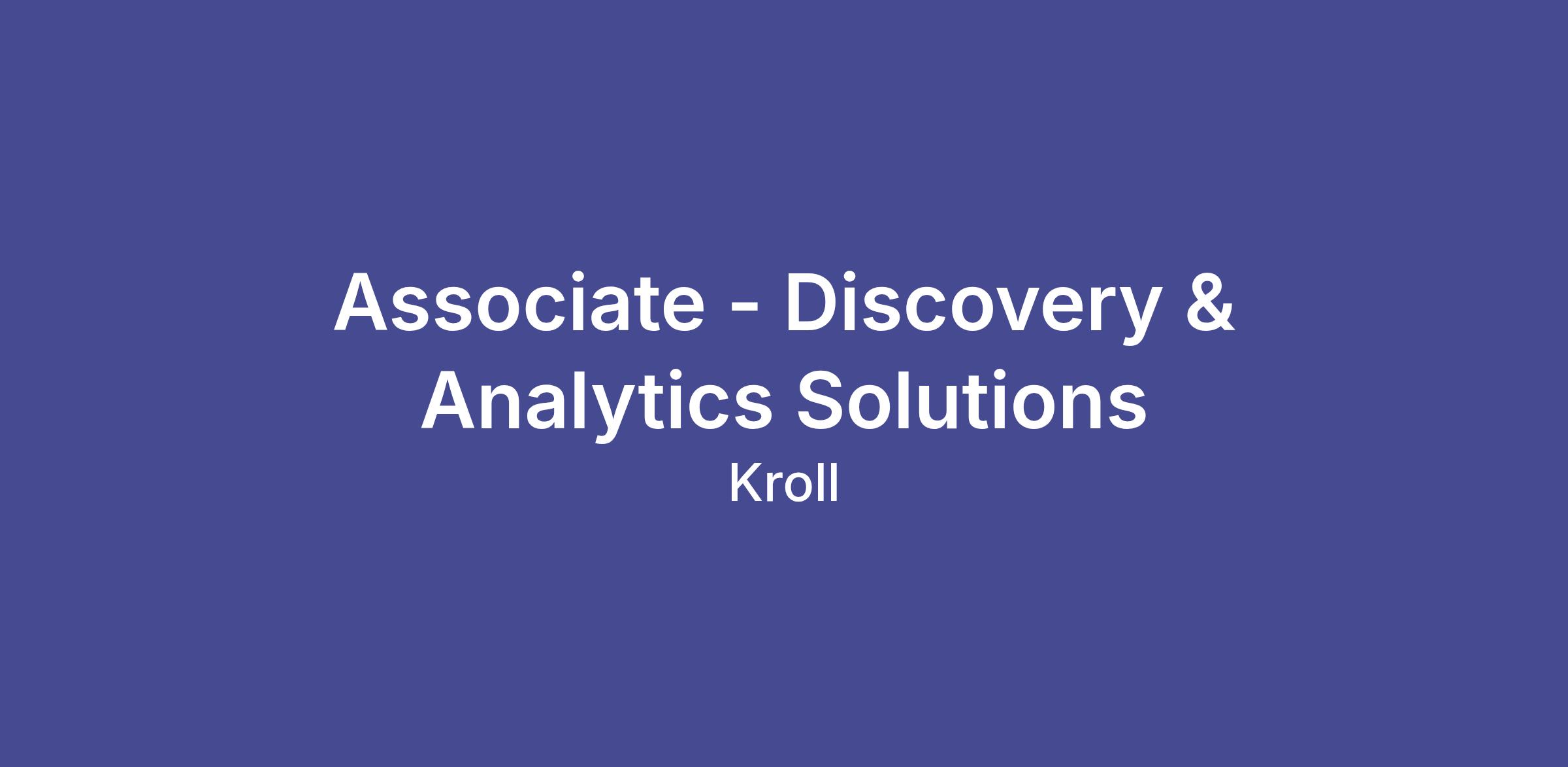 Kroll is seeking an Associate in its Discovery & Analytics Solutions practice supporting its global eDiscovery delivery operations. This role focuses on executing foundational discovery tasks while developing technical, analytical, and professional skills within a structured team environment.