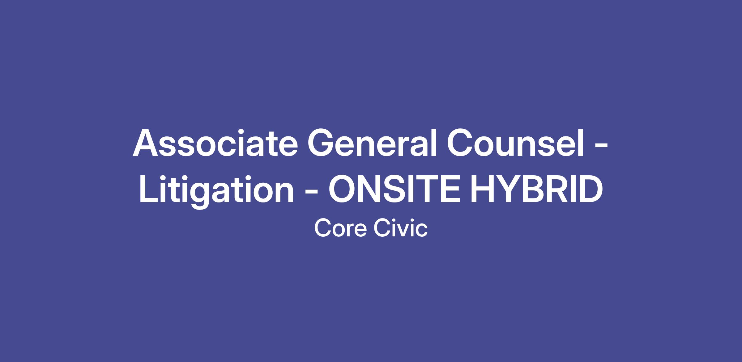 At CoreCivic, our employees are driven by a deep sense of service, high standards of professionalism and a responsibility to better the public good. CoreCivic is currently seeking a Associate General Counsel - Litigation located at our corporate office in Brentwood, TN. Come join a team that is dedicated to making an impact for the people and communities we serve.