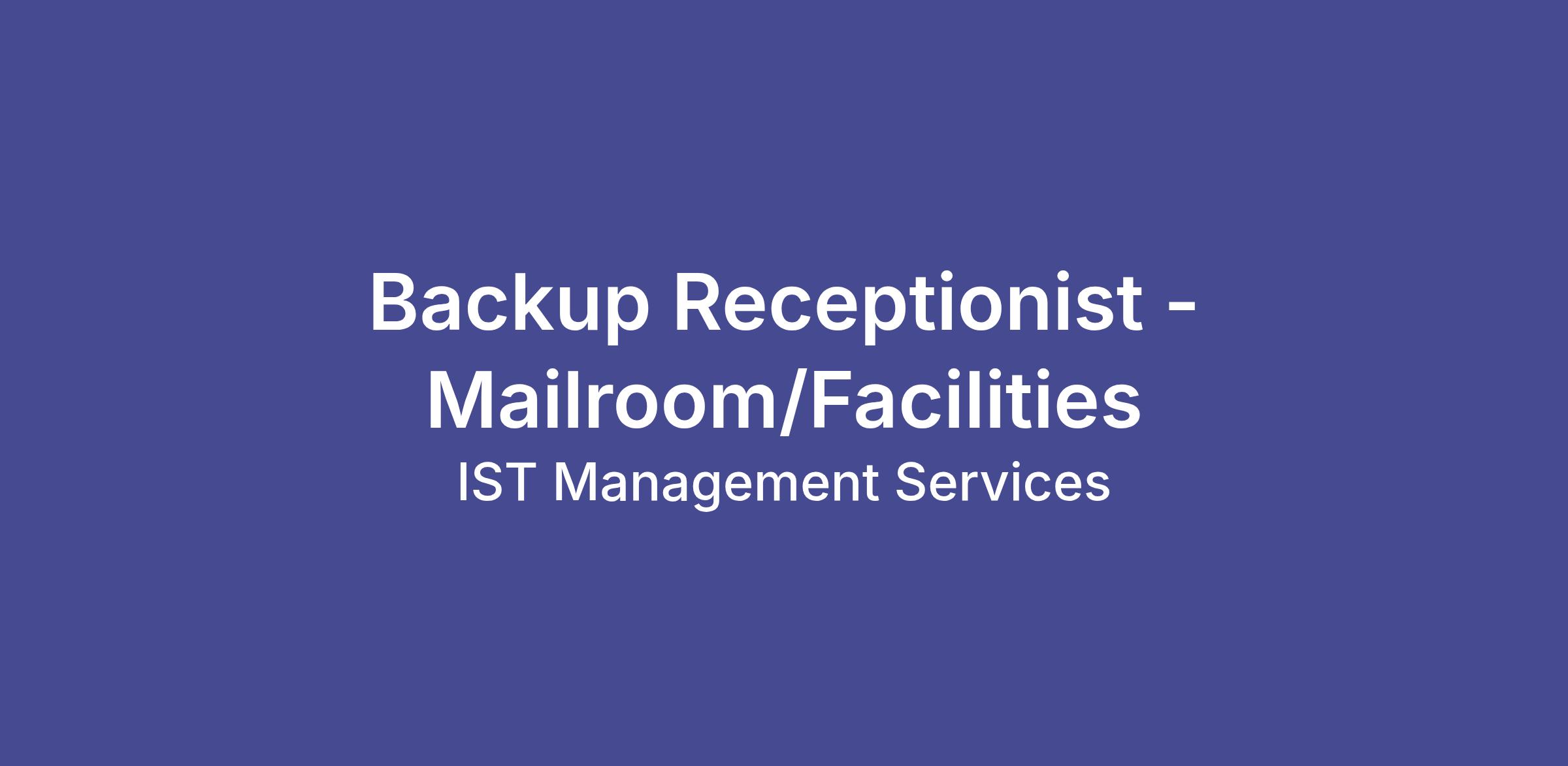 IST Management is seeking a Backup Receptionist/Mailroom/Facility Specialist to join the team! The Backup Receptionist/Mailroom/Facility Specialist will be responsible for providing reception, mailroom services, hospitality, and other administrative support services on-site in a professional corporate environment. Ideal candidates will have the ability to confidently interact with clients and visitors, possess excellent communication abilities, and are ready to grow in their professional career. Prior experience in a mailroom, hospitality, reception or administrative role is a huge plus!