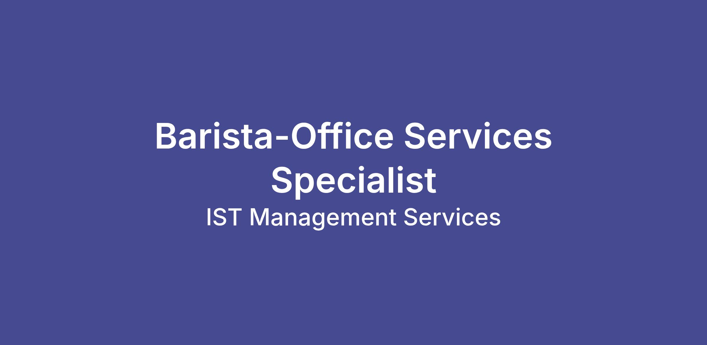 Consider a new opportunity today as a Barista/Office Services Team Member with IST Management Services, the fastest-growing, national, facilities management company in the industry. IST Management is a BPO Company (Business Process Outsourcing) specializing in providing solutions for the management of physical and digital information through Facilities Management, eDiscovery, and Electronic Document Management services.