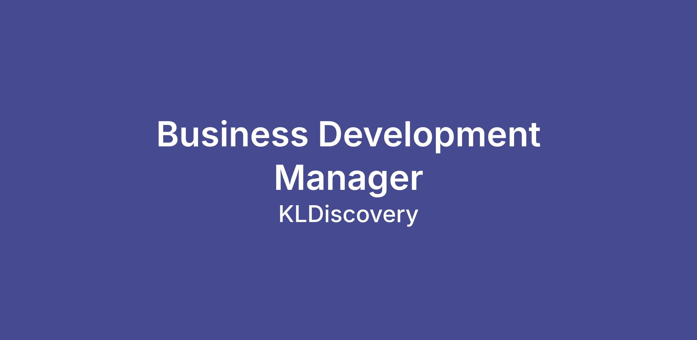 KLDiscovery, a leading global provider of electronic discovery, information governance and data recovery services, is currently seeking a Business Development Manager for its Legal Technology business, located in the US.