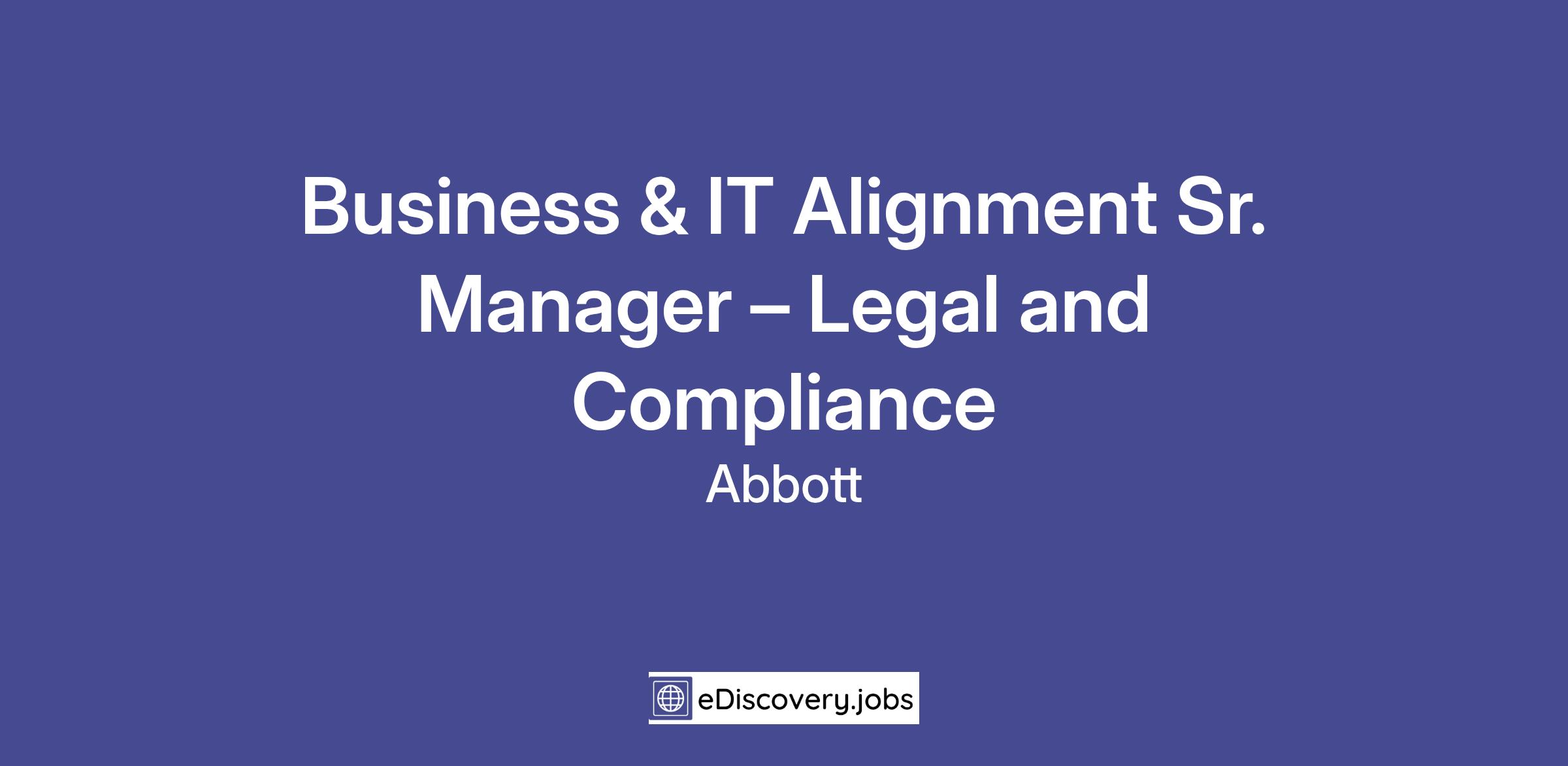 This position works out of our Lake County, IL location in the BTS – Corporate Strategy and Solutions organization. As a Business and IT Alignment Senior Manager supporting Legal and Compliance, you will lead the development and execution of IT strategy, project roadmaps, and technology solutions that enable Abbott’s Legal, Compliance, and Privacy objectives. You will oversee a team of project managers and technical professionals, partner with Legal, Compliance, Privacy and IT leadership, and ensure alignment with regulatory requirements and business priorities. This role also provides insight to the business functional teams on how to best develop and leverage IT capabilities, proactively identifying areas of opportunity to apply IT for new enablement opportunities, process improvement and cost efficiencies. It harmonizes, motivates and provides development opportunities for team members, including coaching and mentoring.
