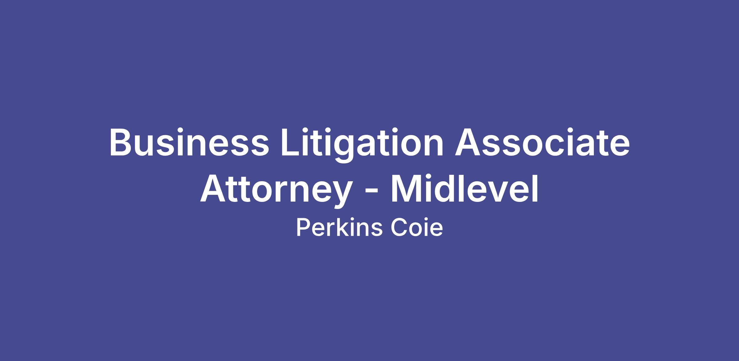 Perkins Coie is seeking a lateral litigation associate for the Portland office with outstanding credentials and preferably 3 to 5 years of experience in civil or complex business litigation. Experience may include a judicial clerkship, which is encouraged. Successful candidates will be eager to practice law at a high level, committed to professionalism and excellence, and have a strong work ethic, distinctive academic credentials, superb written and oral advocacy skills, and excellent references. Experience with large and sophisticated litigation matters and e-discovery is a plus.
