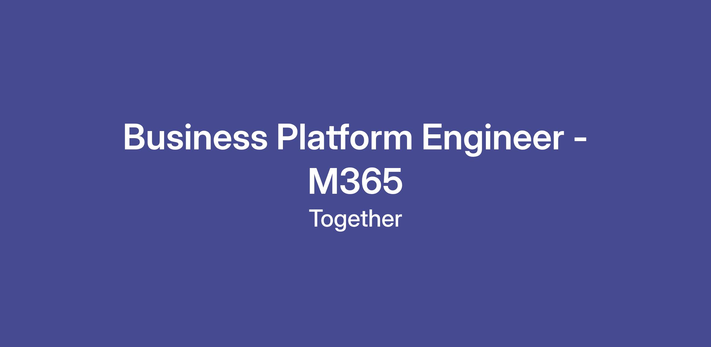 we are looking for a seasoned Business Platform Engineer with experience in business process re-engineering experience in Microsoft 365 suite: Mail, SharePoint, OneDrive, Teams, Office Apps, Enterprise Applications, Copilots, eDiscovery and Purview, Powershell, Entra etc.