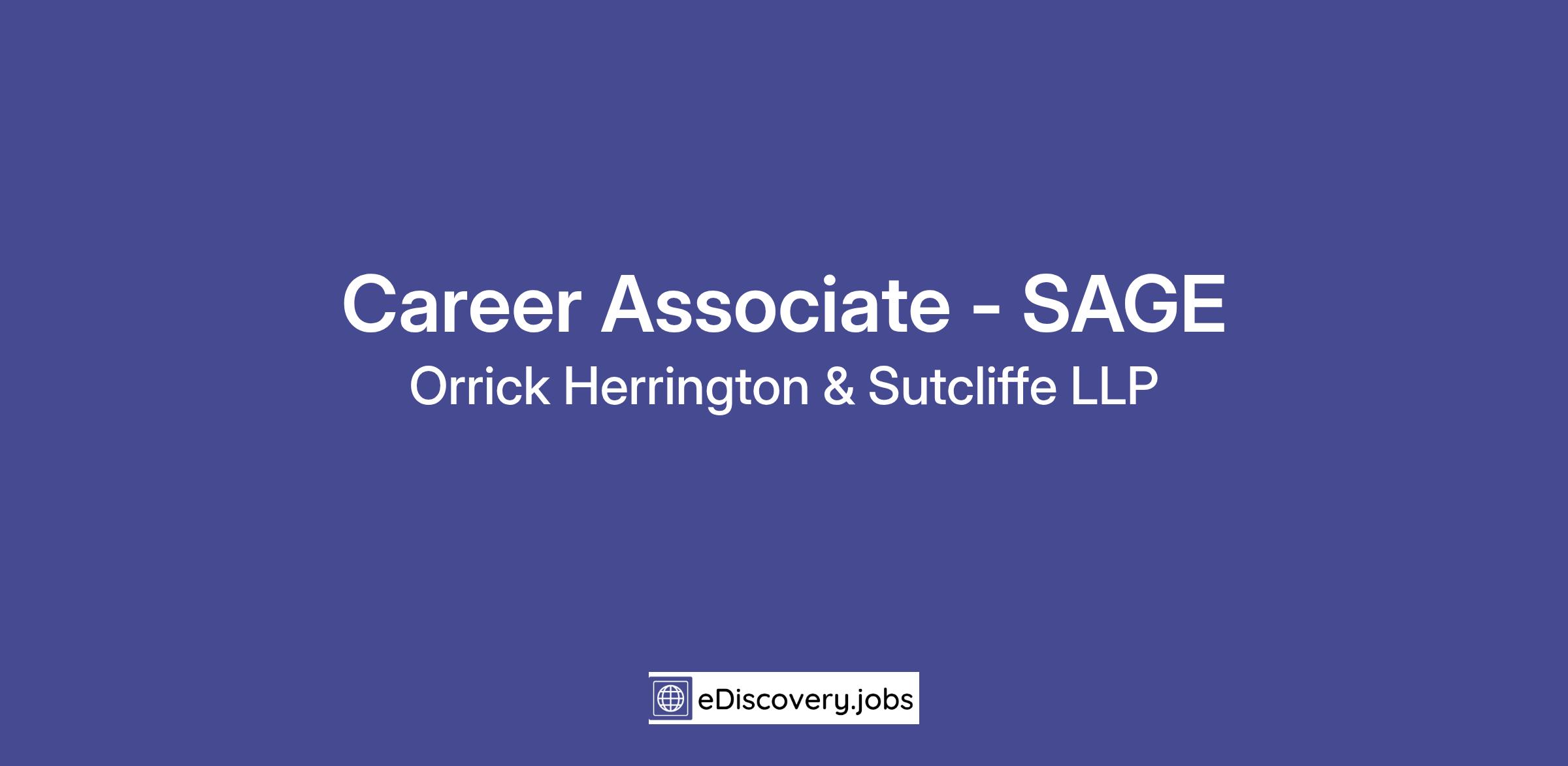 Orrick Herrington & Sutcliffe LLP is seeking a Career Associate with 3-5 years of civil litigation experience to support the litigation teams in our Strategic Advisory and Government Enforcement (SAGE) group.