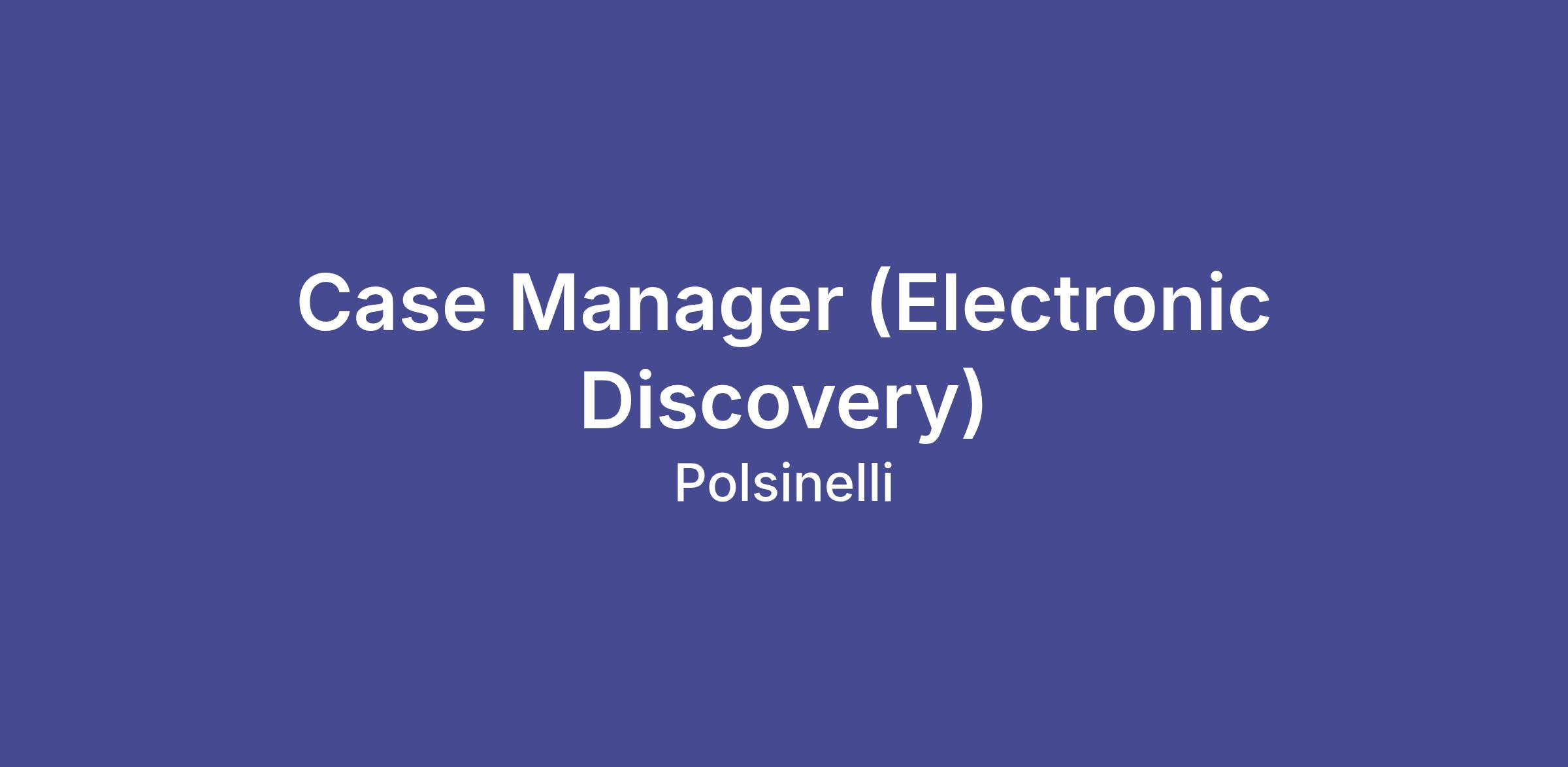 Polsinelli is hiring a Case Manager for our Electronic Discovery Services Group in our St. Louis or Kansas City office. This is a remote position after a probationary period. This position requires someone that can work with case teams to resolve eDiscovery issues and create document reviews and productions in a timely manner.