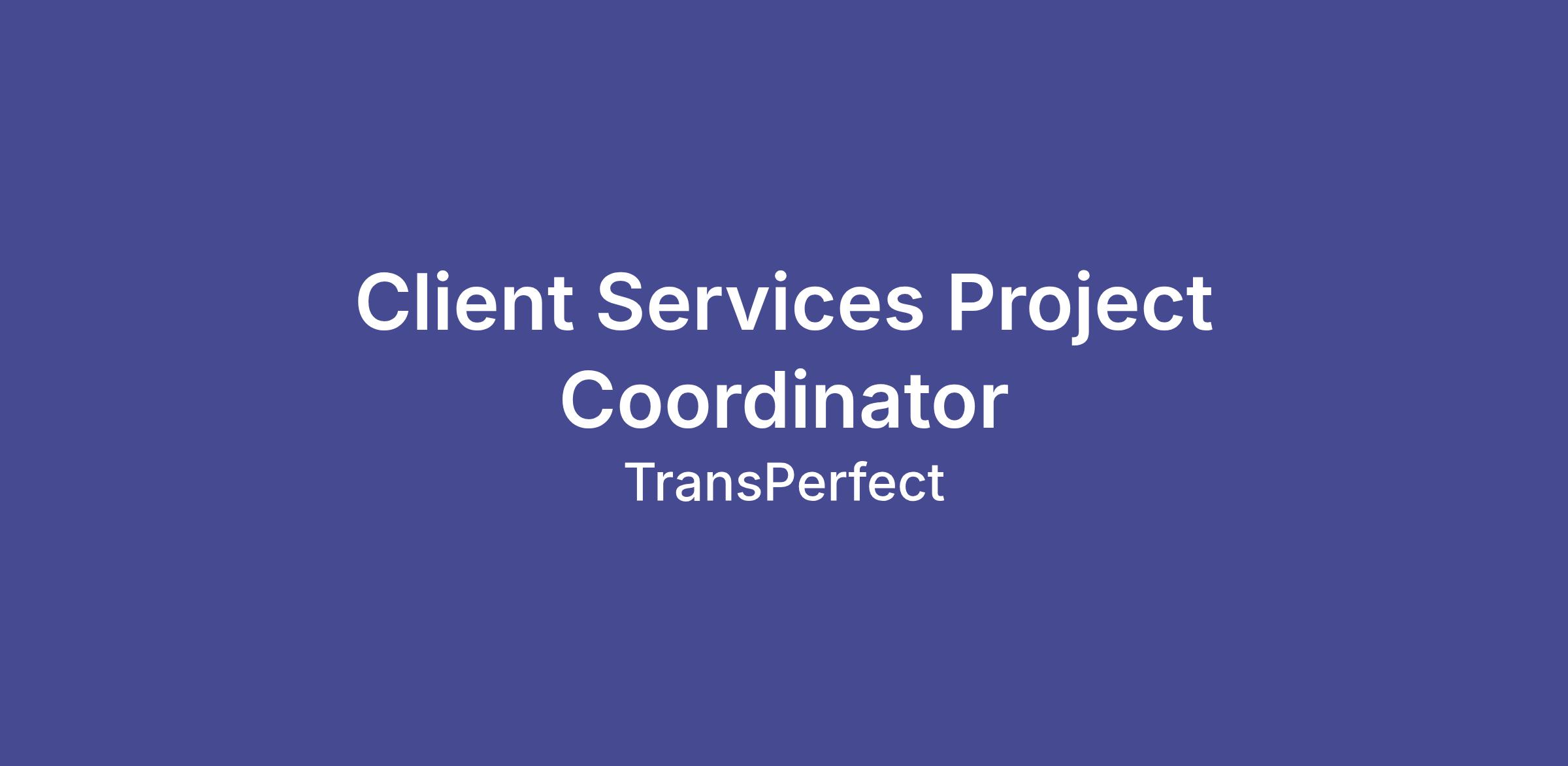 As a Client Services Project Coordinator you are a: