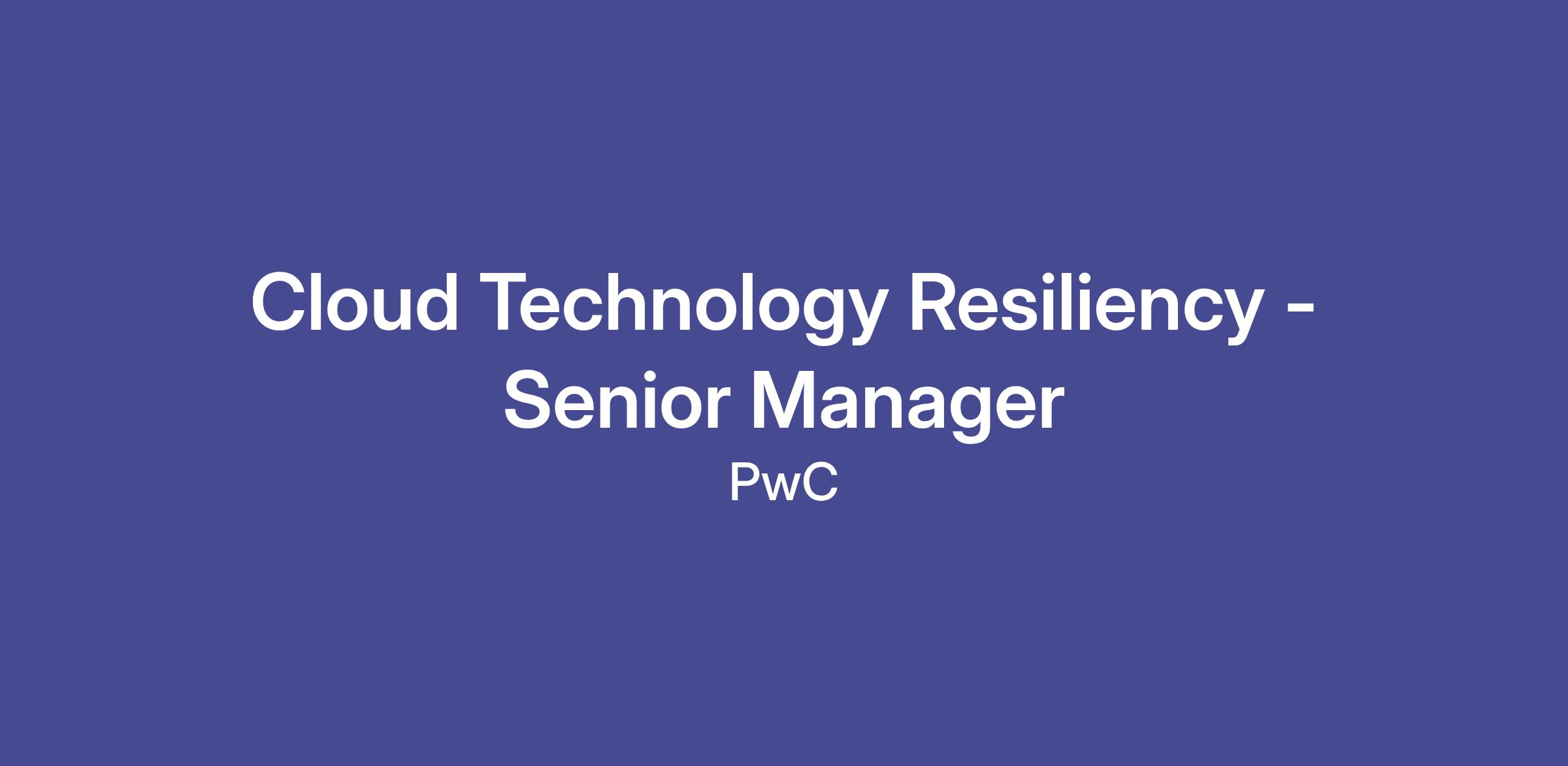 Position Title: Hybrid Cloud and Tech Resilience-Senior Manager