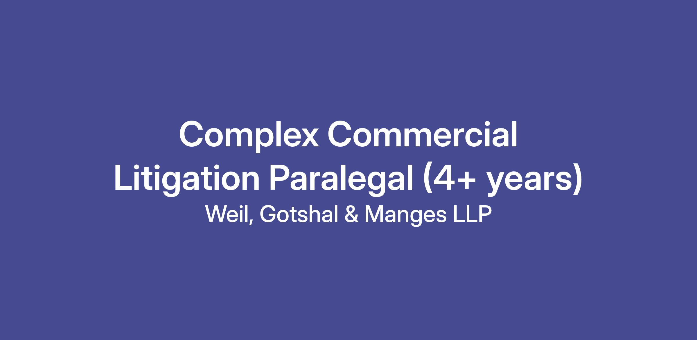 - A minimum of 4 years of complex litigation experience, including service as the lead paralegal at complex trials.