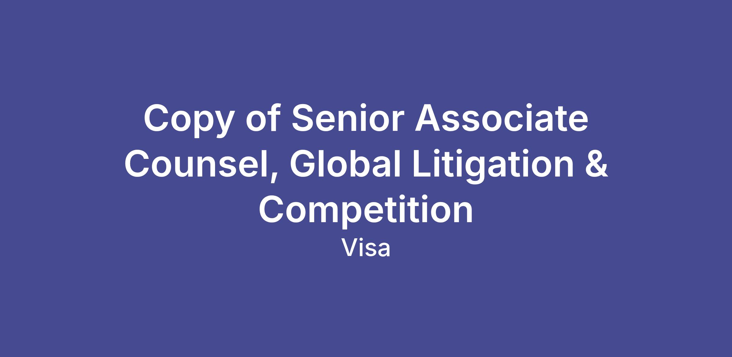 As Sr. Associate Counsel, you will be responsible for managing and supporting a diverse range of litigation and pre-litigation matters, as well as providing day-to-day legal advice to a variety of business units within the company. Litigation matters are likely to include class action lawsuits, breach of contract and other business disputes, and responding to third-party subpoenas and government requests. This role will report into Visa’s Global Litigation & Competition team and sit in our Foster City office.
