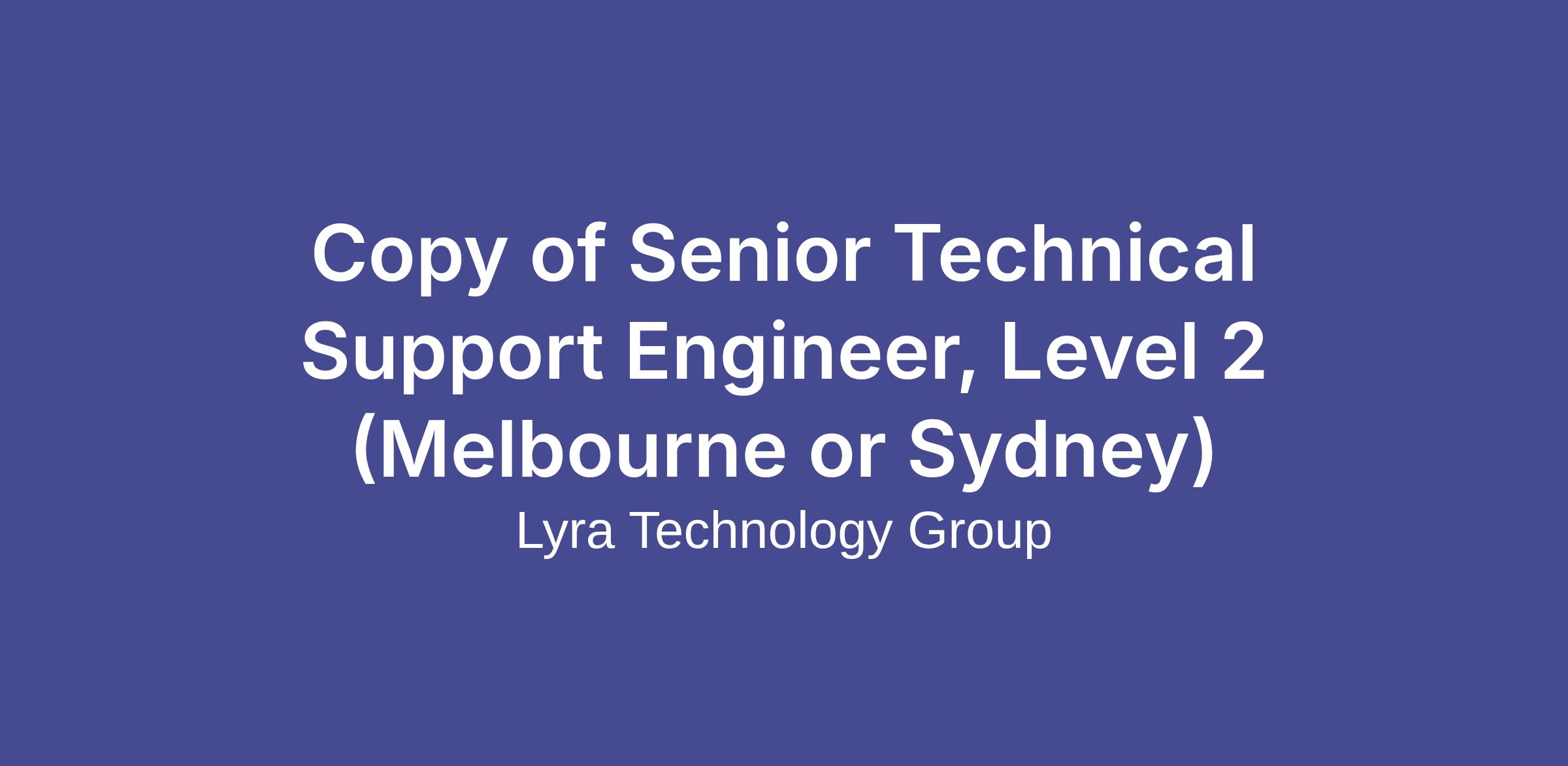 We are looking for a Senior Technical Support Engineer, Level 2 to join our operating company in either Sydney or their Melbourne office. (open to Brisbane based candidates)