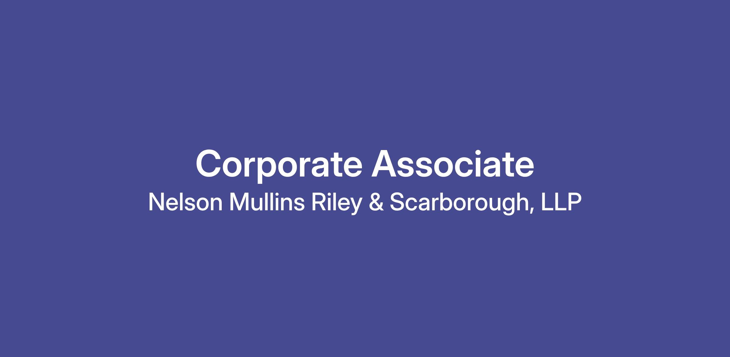 Are you looking to join a tenured team at an AmLaw100 firm? Nelson Mullins is seeking an associate to join its Corporate group.