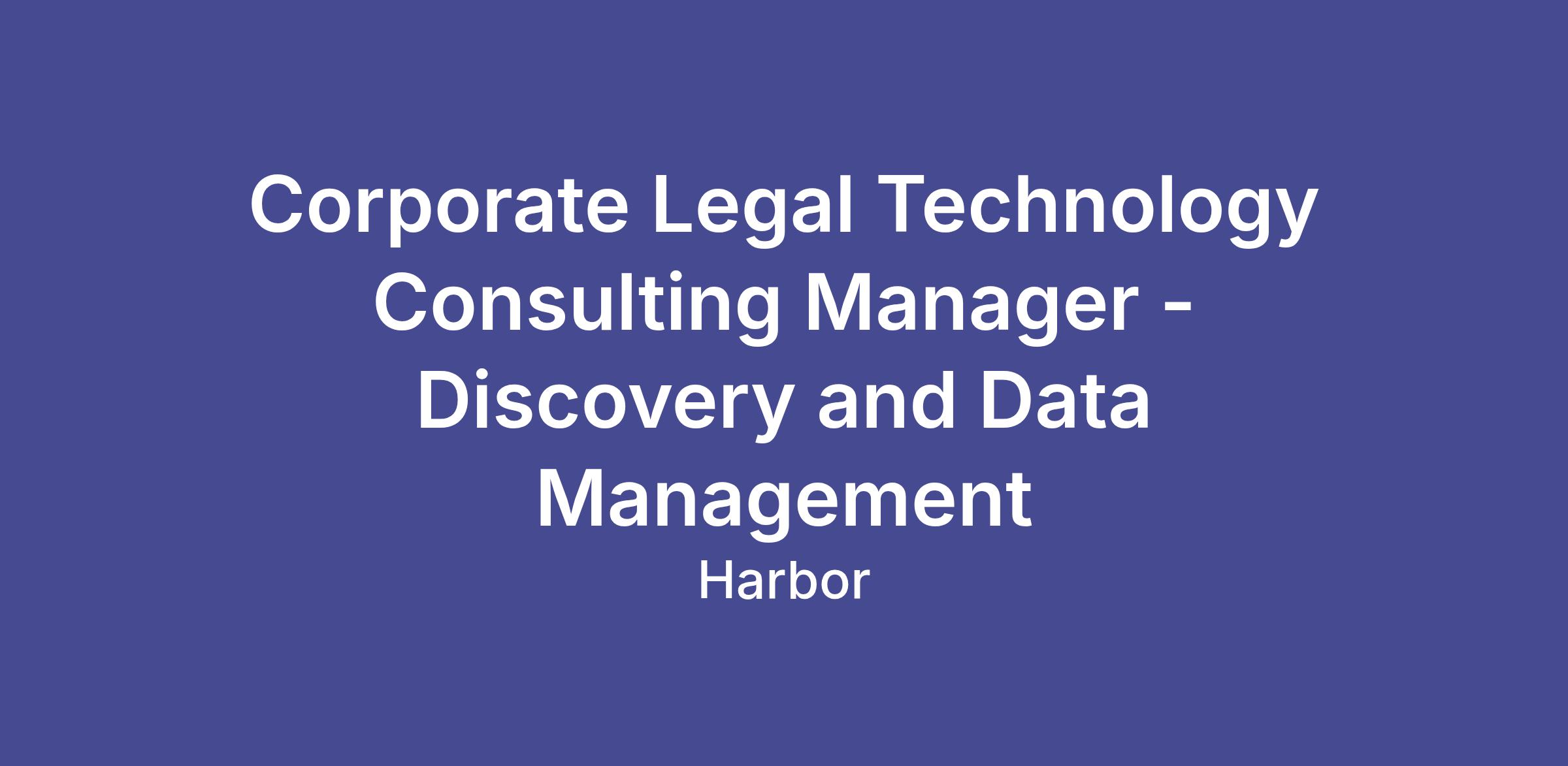 Harbor is seeking a Legal Technology Consulting Manager, DDM to join our growing team. Harbor is a leading provider of strategy, legal technology, operations, and intelligence services, with 800 experts operating in the US, Canada, UK, and Australia. Our exclusive focus on the legal industry, working directly with law firms and corporate law departments, provides us with a deep understanding of the legal ecosystem, related technologies, best practices, and trends, positioning us to deliver value to our clients and play an important role in driving innovation in legal service delivery.