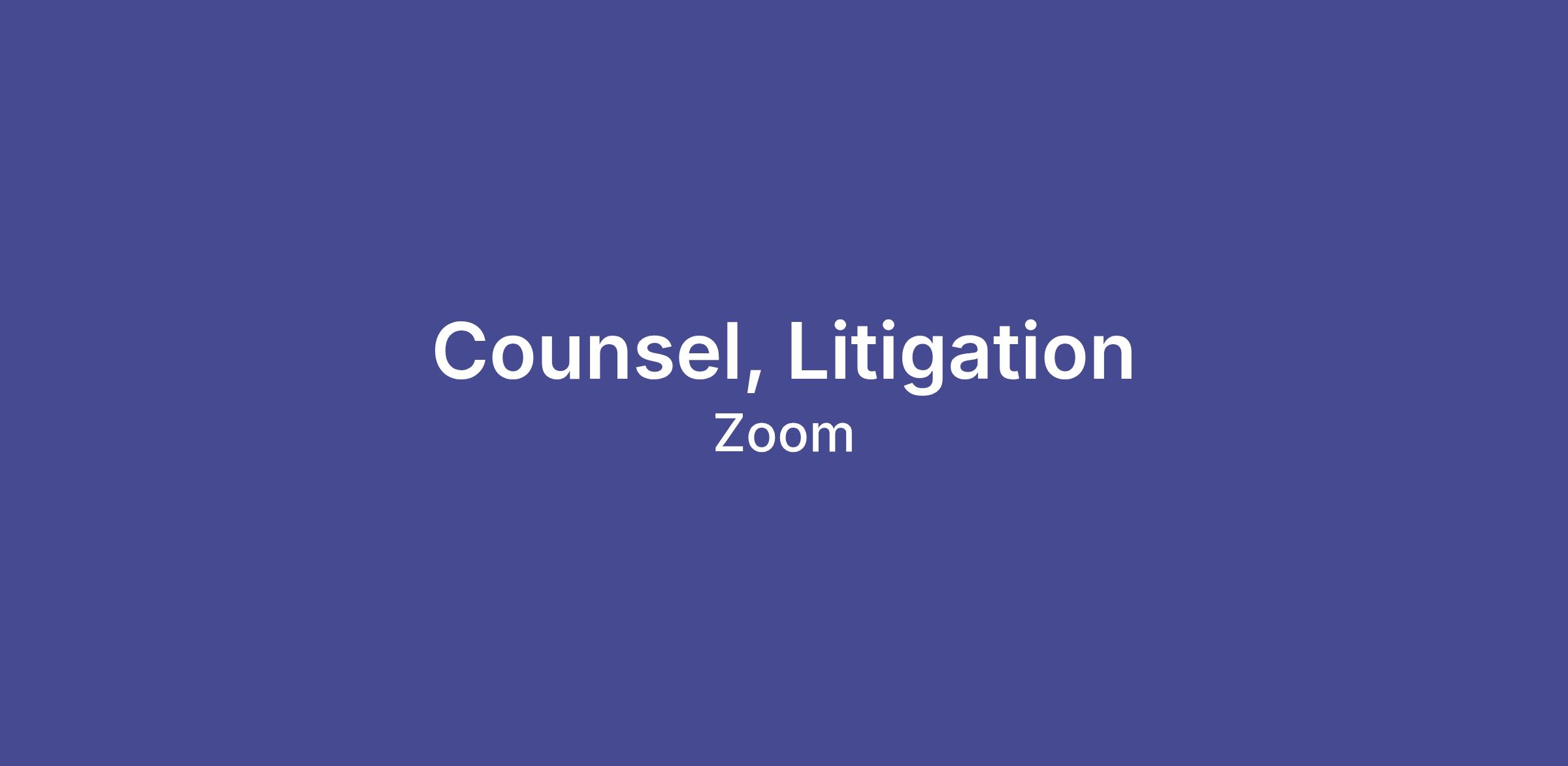 Zoom is looking for a Litigation Counsel to join our close-knit and collaborative team that manages litigation, intellectual property, and regulatory matters. This role will provide critical support to the litigation team by building and improving processes, maintaining records, and coordinating communications within the litigation team and across Zoom. The ideal candidate will have a proven track record of managing multiple priorities in an evolving environment and collaborating with cross-functional teams to drive results. This position reports to the Chief Privacy Officer.