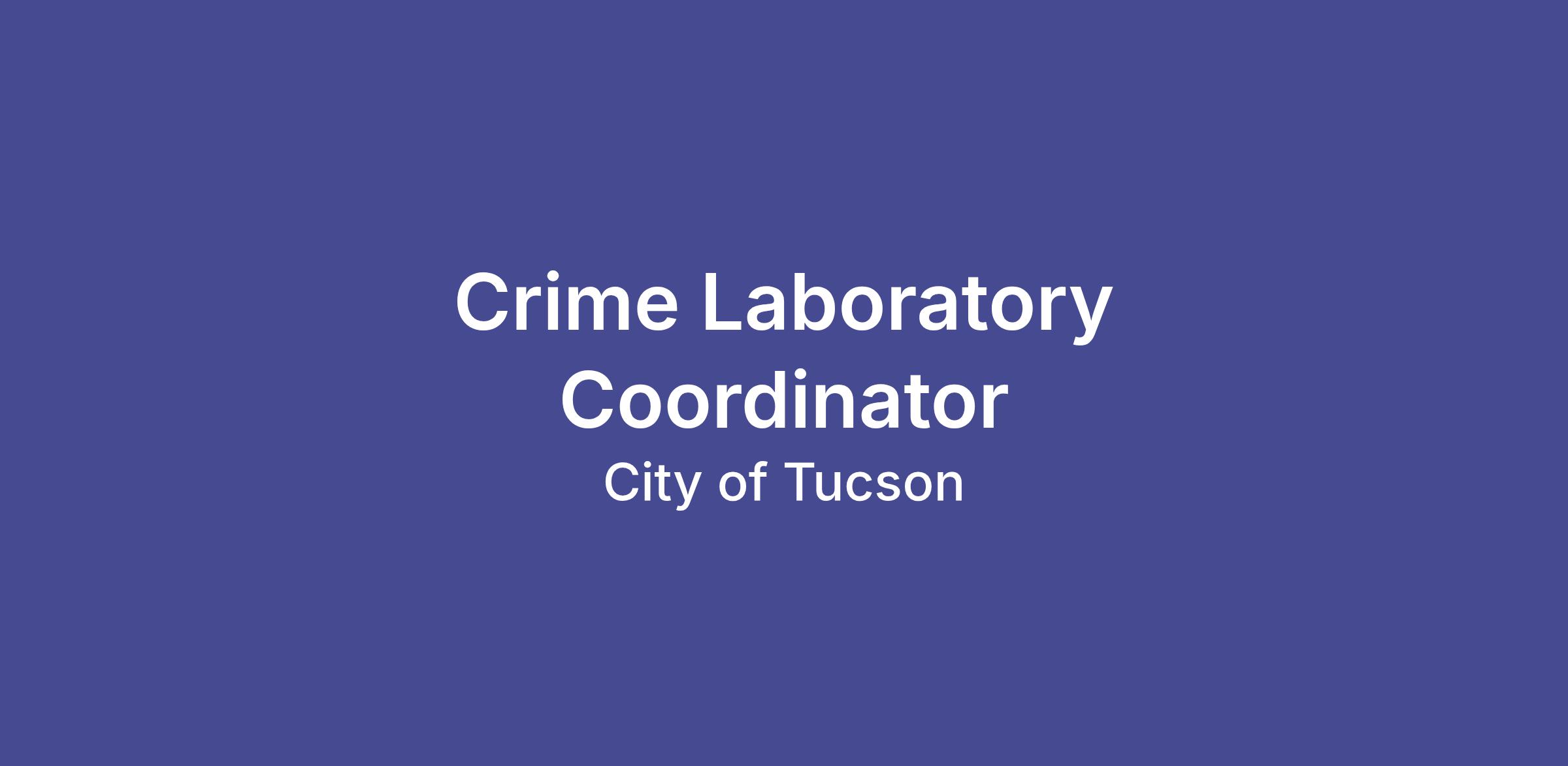 J6328 - Crime Laboratory CoordinatorView full job profile including classification specifications and physical demands at https://www.tucsonaz.gov/Departments/Human-Resources/Tucson-Talent.