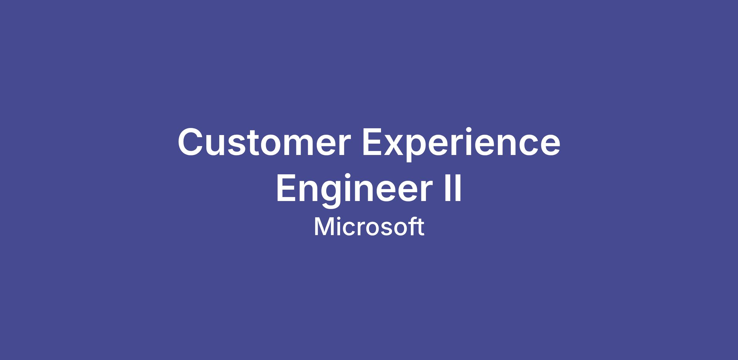 We are looking for a Customer Experience Engineer II to join the Product Health & Escalation team, where you will be responsible to directly own and resolve critical escalations raised by Microsoftβs top Security customers focused on the Microsoft Purview suite. You will manage response to customer escalation requests via phone, email, or web, representing a 24x7x365 available Microsoft Security Engineering team. As a subject matter expert in Microsoft Purview, you will routinely engage with feature teams, account teams, solution architects, and senior leadership to manage deeply technical customer issues that result in overall product design improvement and accelerate customer adoption. You will have an opportunity to be at the forefront of emerging technologies, and as you learn and grow you will have opportunities to contribute to the technical growth of your peers.