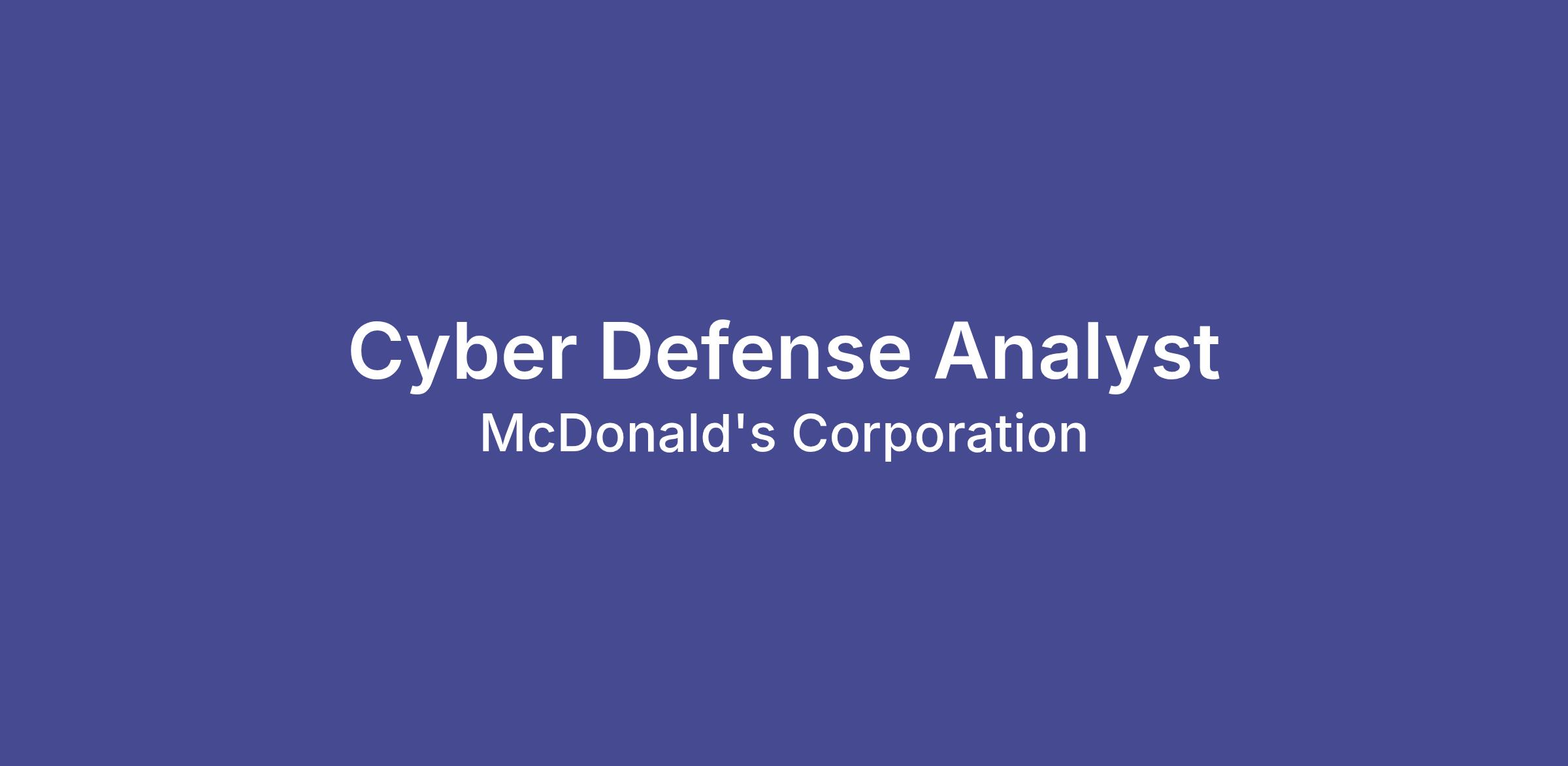 You will collaborate closely with the Incident Response and Cyber Operations teams, working on long-term projects to strengthen our security posture. We are moving fast and are adding to our best-in-class team and joining McDonald's means thinking big every day and preparing for a career that will impact the world. We are customer-obsessed and committed to being leaders in our industry.