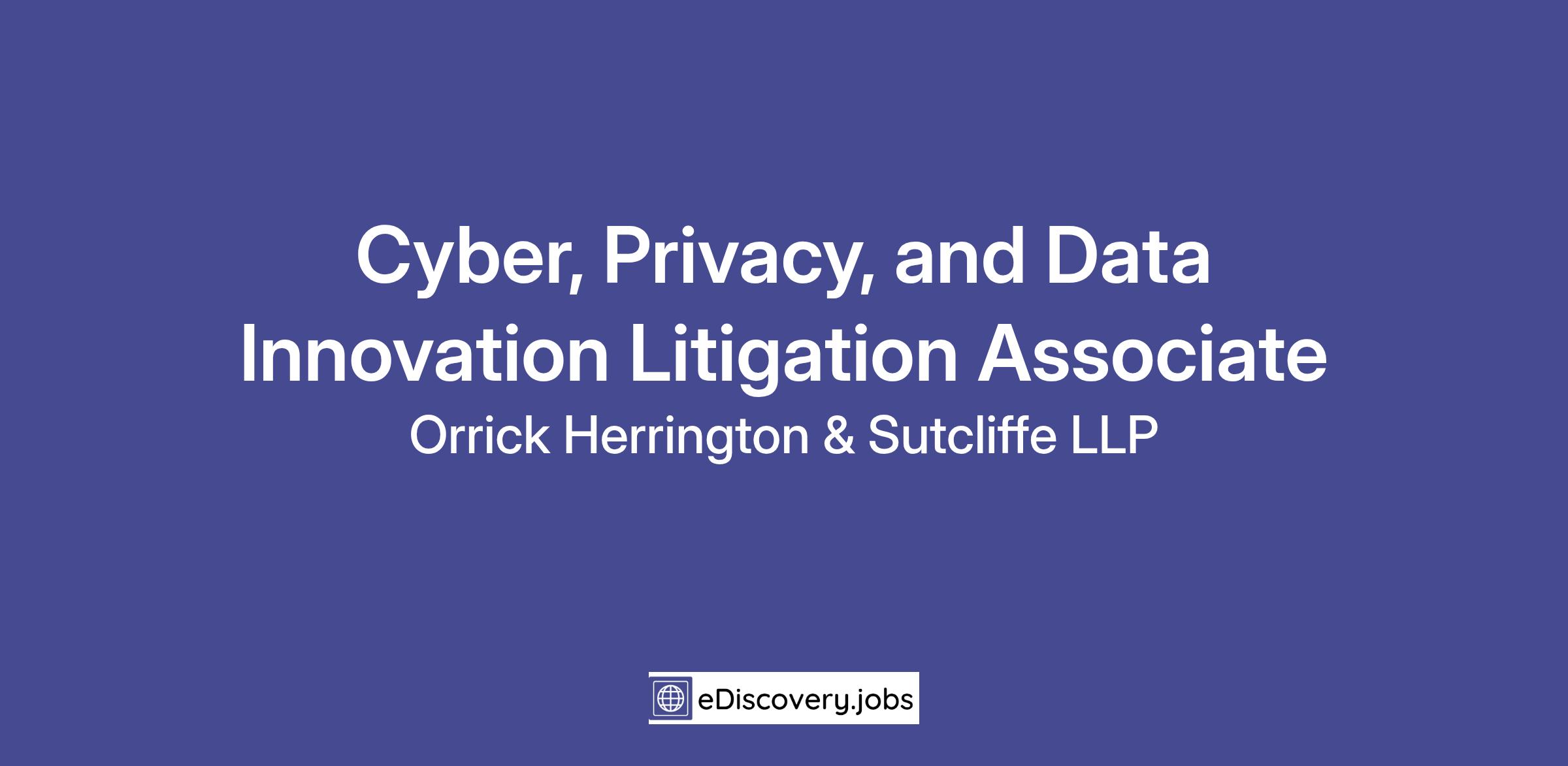 We are seeking a junior litigation associate with 2-3 years of litigation experience to join our busy, cutting-edge Cyber, Privacy, and Data Innovation team. Responsibilities include working on our robust pipeline of sophisticated, innovative, and industry-leading litigation, including class actions, across a range of clients in Orrick’s industry verticals of technology, finance, life sciences, and energy.
