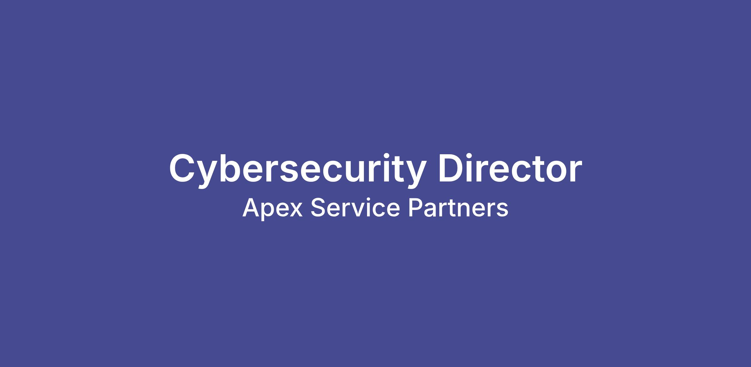 Apex Service Partners is seeking a Director of Information Security to lead our enterprise security strategy across a modern, fully clouddriven environment. This is a highimpact leadership role responsible for building and maturing our security program as we scale nationally.