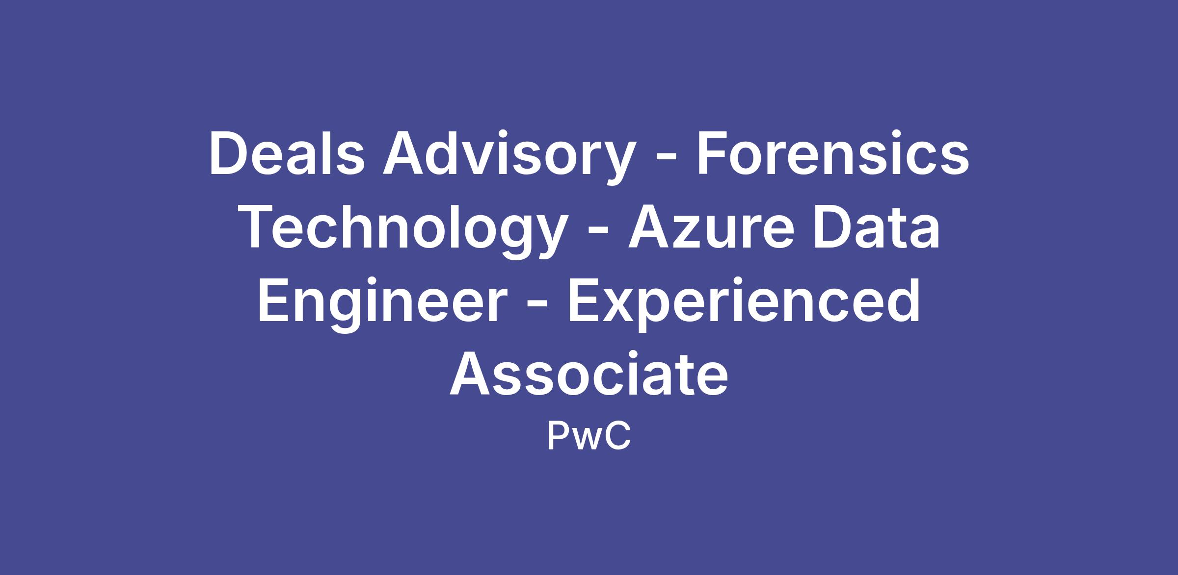 Deals Advisory - Forensics Technology - Azure Data Engineer - Experienced Associate