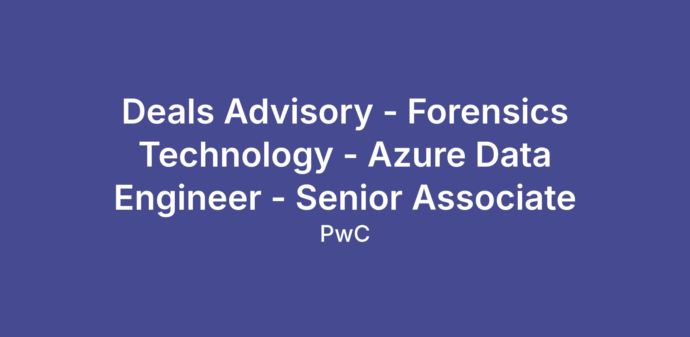 Deals Advisory - Forensics Technology - Azure Data Engineer - Senior Associate