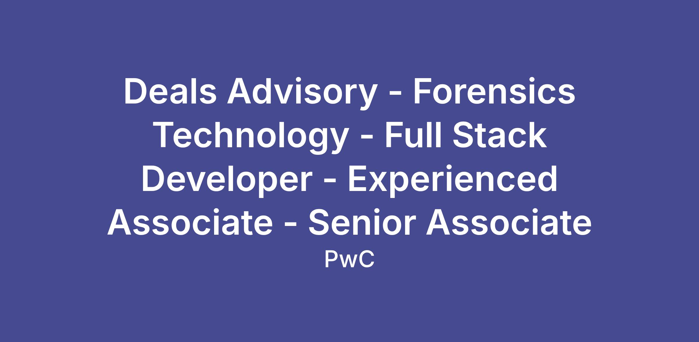 Deals Advisory - Forensics Technology - Full Stack Developer - Experienced Associate - Senior Associate