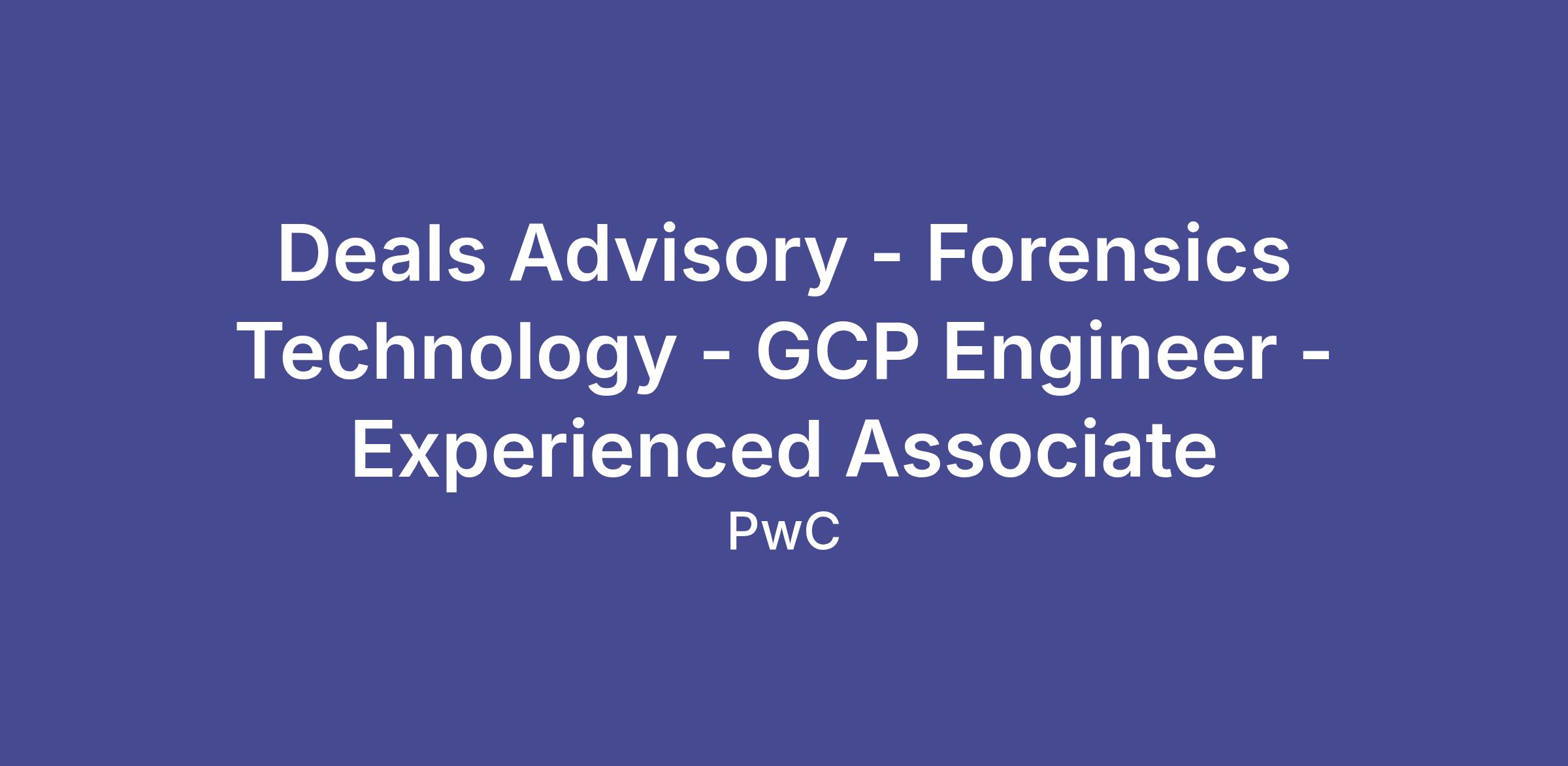 Deals Advisory - Forensics Technology - GCP Engineer - Experienced Associate