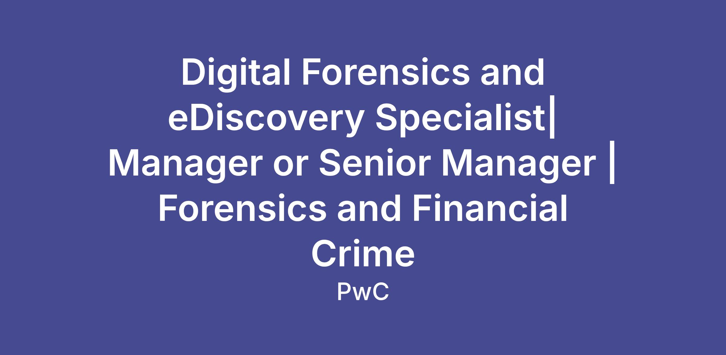 At PwC, when critical evidence is buried in millions of data points, our clients depend on us to find the truth with precision and integrity. As a Manager or Senior Manager, eDiscovery and Forensics, you'll direct sophisticated forensic investigations, lead cross-functional teams through complex eDiscovery lifecycles, and translate technical findings into strategic counsel that shapes client outcomes. Your leadership will drive innovation in our forensic capabilities, build a team that sets the standard for excellence, and help clients across legal, financial services, government, and corporate sectors navigate high-stakes investigations with confidence.