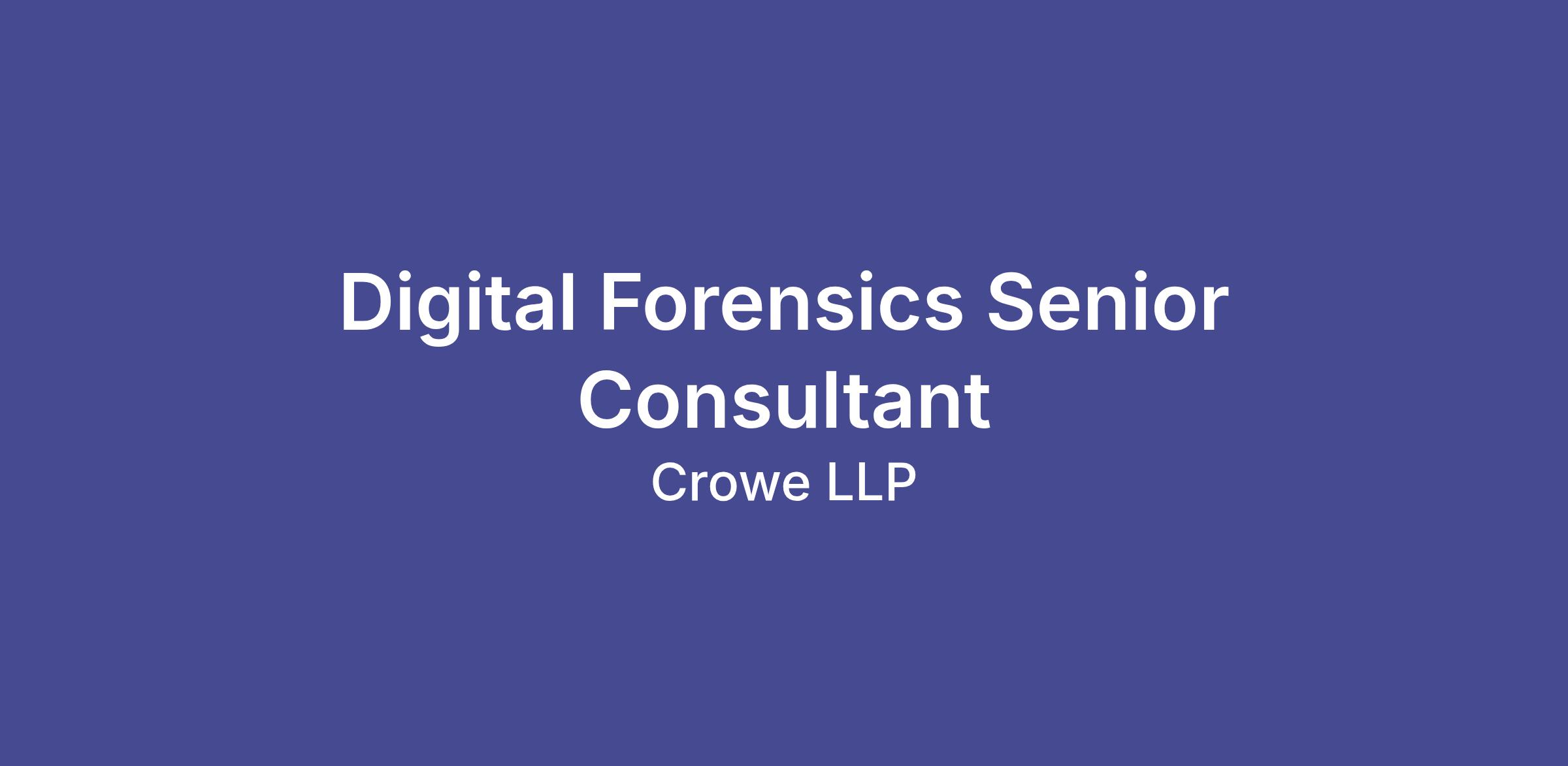 We are looking for a Digital Forensics Consultant for Crowe LLP’s fast-growing digital forensics provider.
