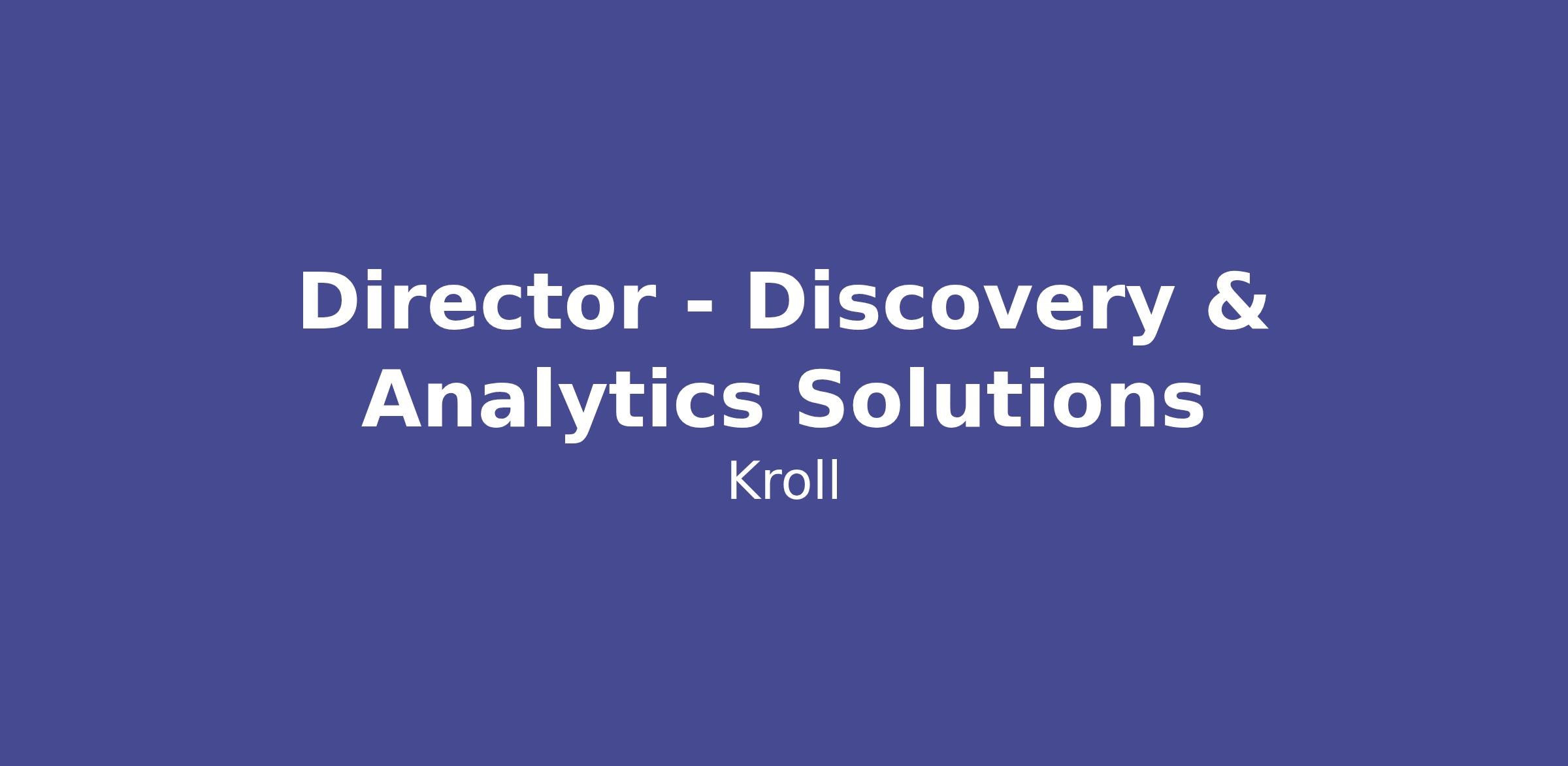 The Director will oversee local delivery operations, partner closely with senior regional and global leaders, and serve as a senior escalation point for complex technical, workflow, and regulatory challenges. This role reports into senior Discovery & Analytics Solutions leadership and works closely with colleagues across the organization.