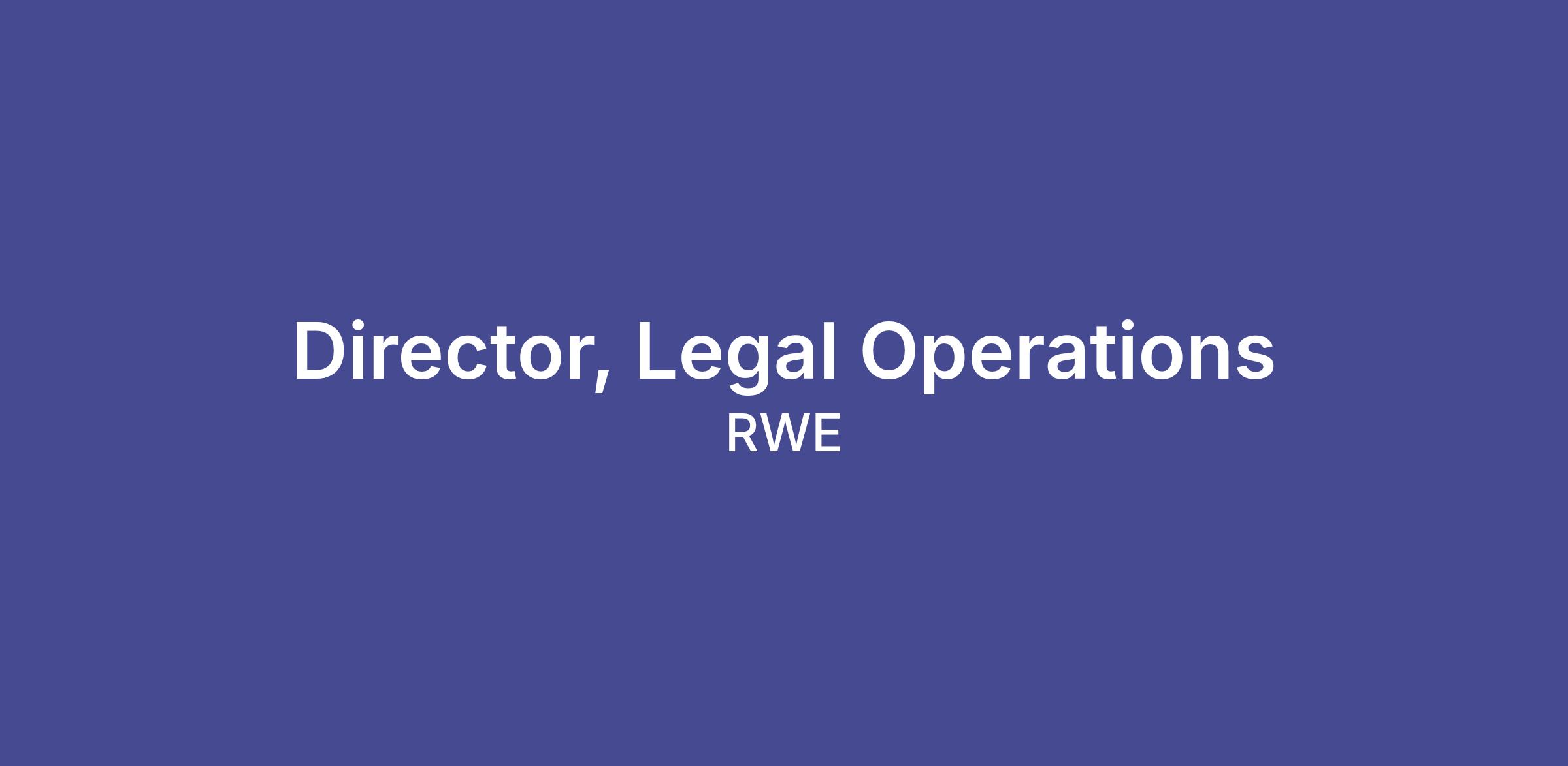 The Director, Legal Operations, will lead the legal operations function for RWECE and, among other things, be responsible for leading strategic projects related to outside counsel engagement, legal technology, project management and process improvement, knowledge management, financial planning, and administrative functions for the RWECE Legal Department. This position reports to the Vice President, Corporate Legal Services and will work in close alignment and cooperation with other members of the Legal Department and members of other shared service business units such as Finance, IT, and HR.