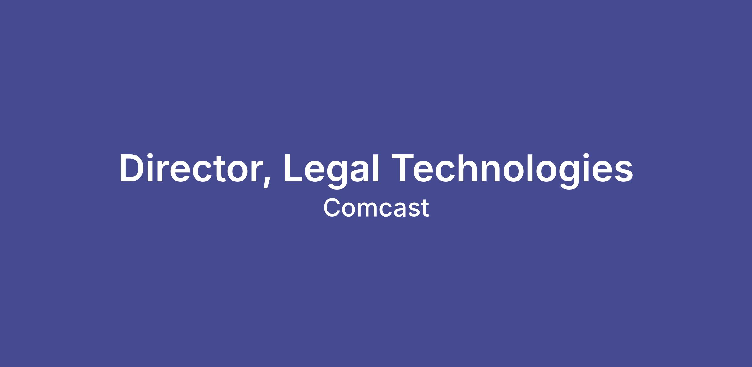 The Director of Legal Technologies leads the strategy, implementation, and optimization of technology solutions that enable Comcastβs Corporate Legal organization to operate efficiently, securely, and at scale. This role partners closely with Legal leadership, Legal Operations, IT, and Compliance teams to modernize legal platforms, strengthen data governance, and deliver resilient, compliant, and user-centered solutions.