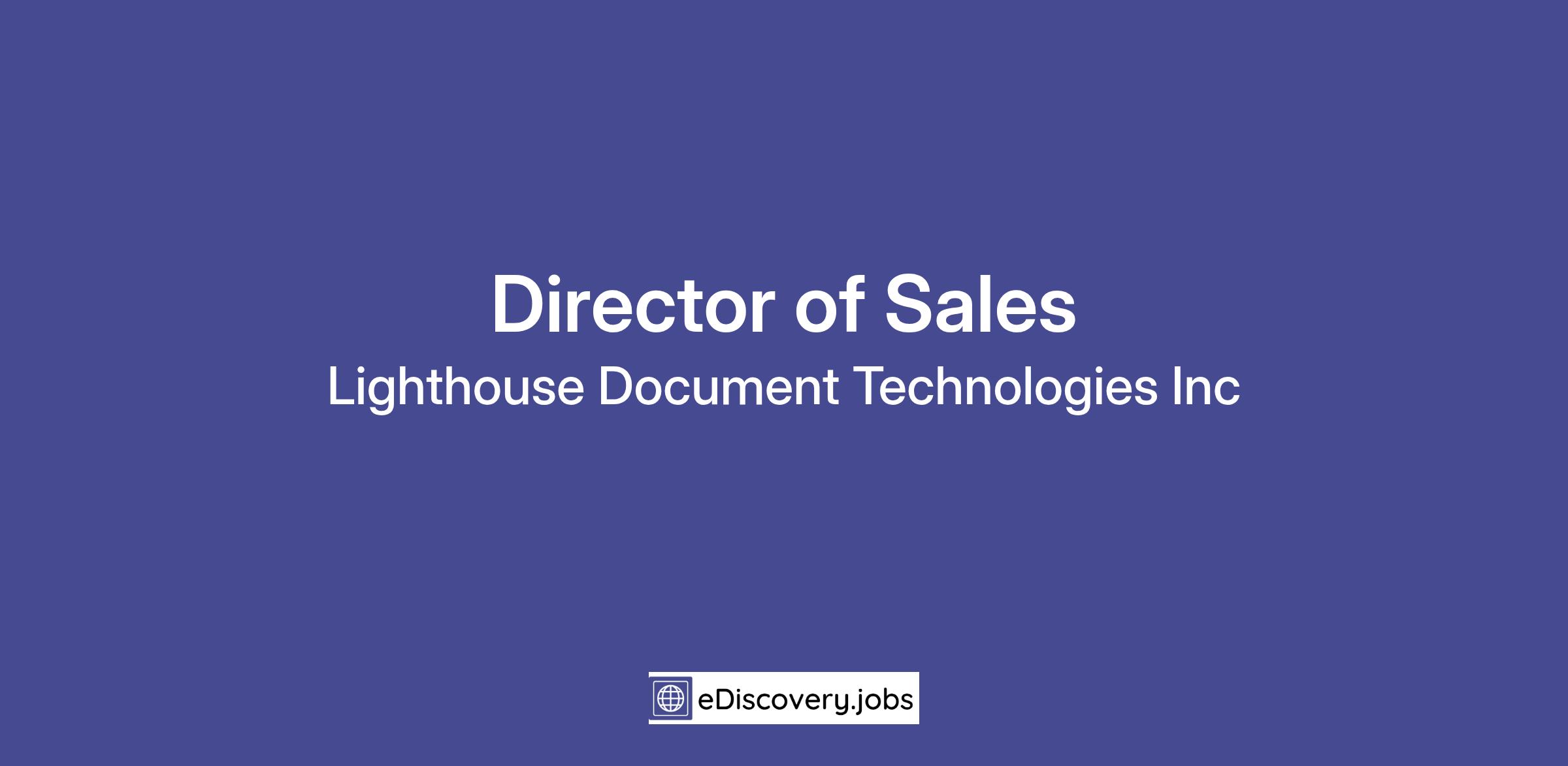 The Director, Sales is an experienced sales professional who will be responsible for sales of Lighthouse products and services to law firms, corporations, and government entities anywhere in the United States. This high-level sales professional must record a minimum of $5.0 million in Gross Revenue in a single fiscal year within the first 3 years.
