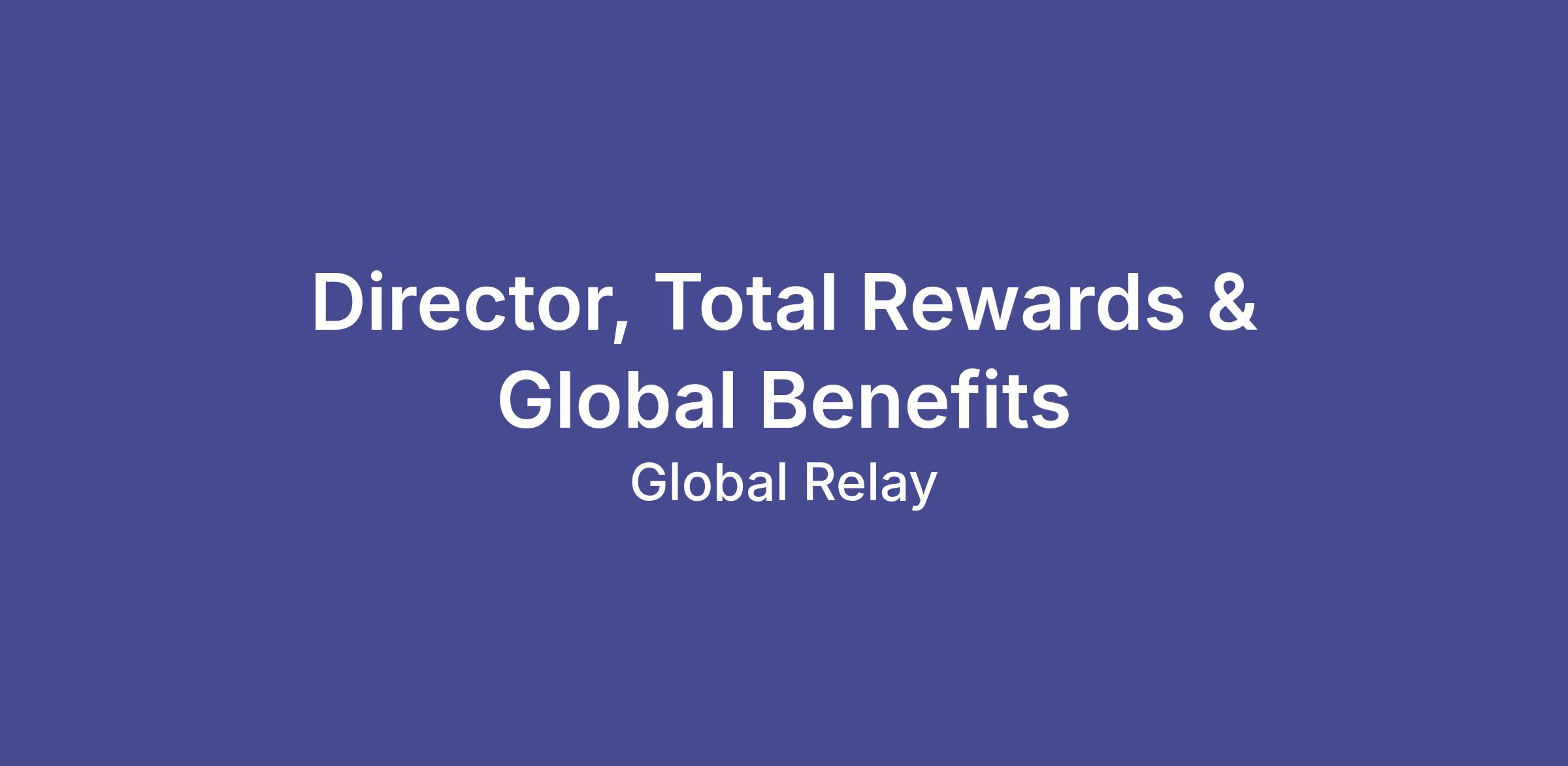 Reporting into the VP of HR, the Director, Total Rewards & Global Benefits leads the strategy, governance, and execution of Global Relay’s global compensation and benefits programs. The role ensures our total rewards framework is competitive, equitable, financially disciplined, and aligned with the company’s growth.