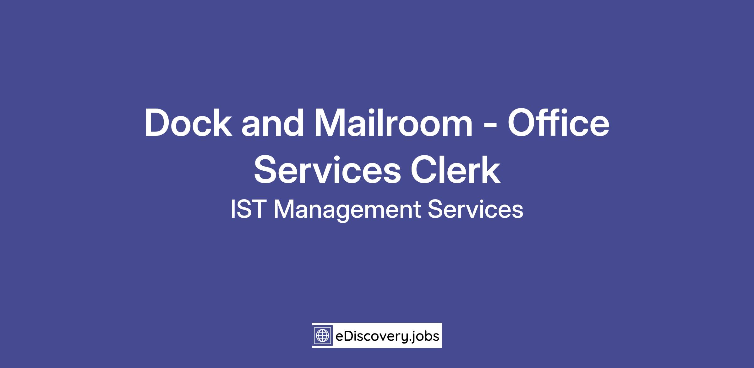 IST Management is seeking a Dock and Mailroom - Office Services Clerk for the Oak Brook team! Ideal candidates will have prior experience in corporate mailroom services, display an excellent customer service mindset, have a valid driver's license, are willing to train, and are ready to grow in their professional career! Prior experience using a pallet jack is a plus.