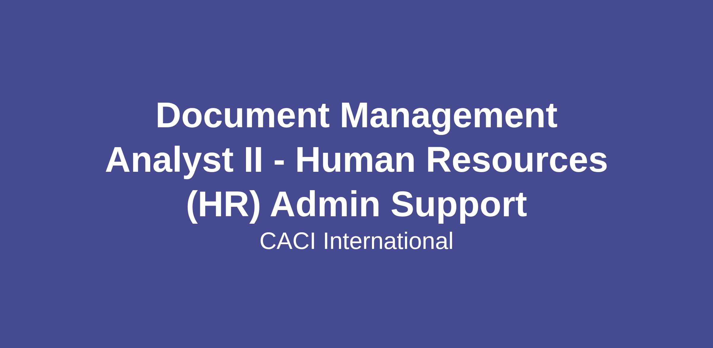 The Human Resources (HR) Section within the U.S. Department of Justice requires administrative and clerical support to manage increased workload and ensure timely, accurate processing of HR documentation. This requirement is for a Document Management Analyst II to support daily HR operations through data entry and records management activities.