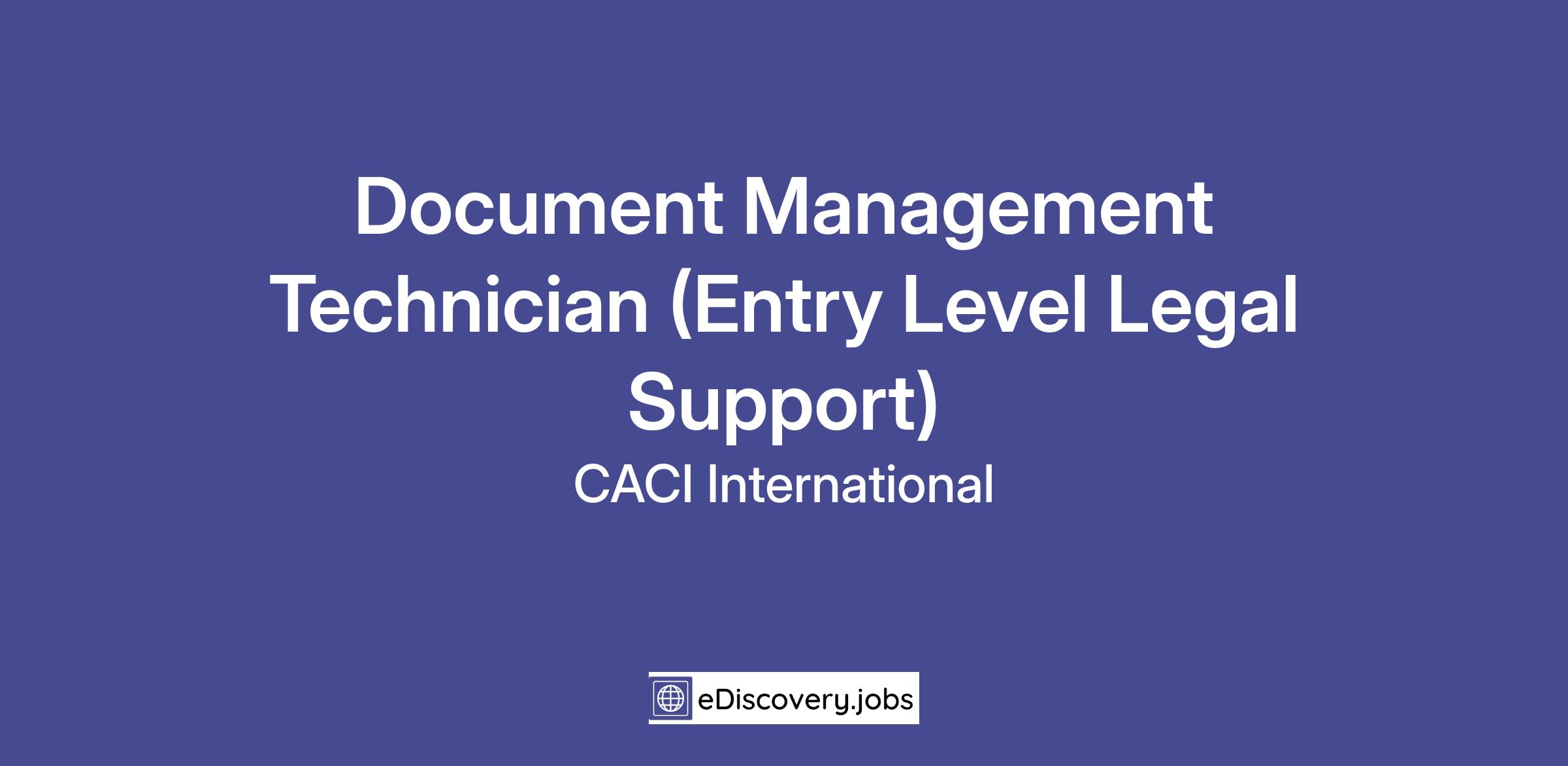 CACI is looking for talented individuals who are just beginning their career in the legal field. The Document Management Technician (DMT) position is an entry level position that allows you to utilize your organizational skills while working closely with attorneys and other litigation support professionals in a fast-paced setting, to collect, store and retrieve important documents as needed.