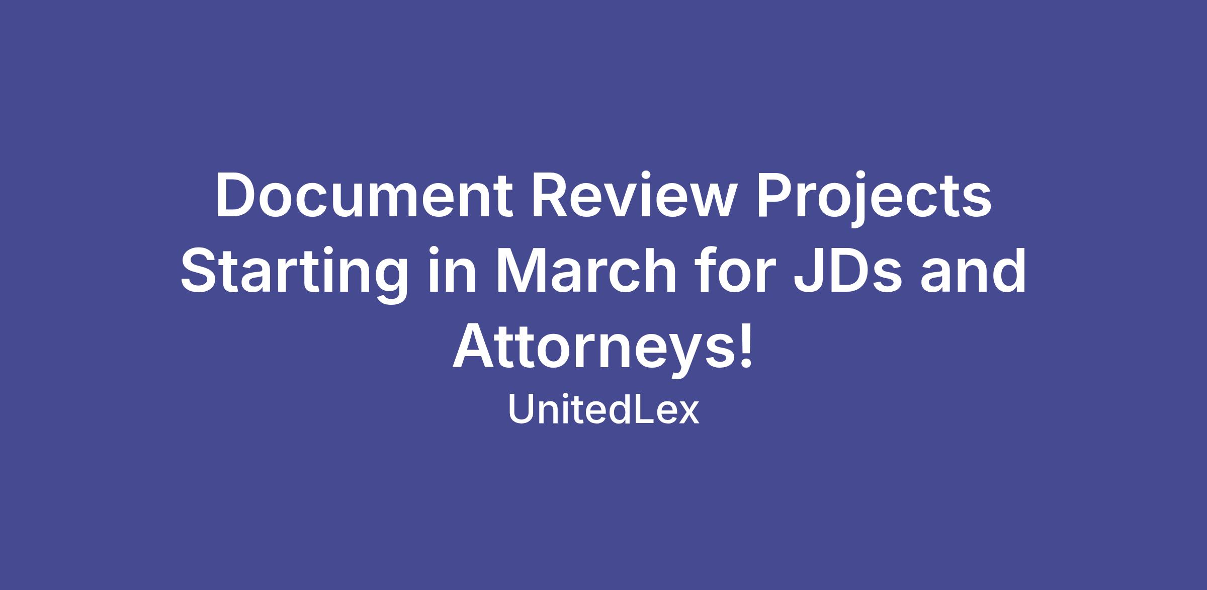 UnitedLex Professional Services is urgently hiring JDs and licensed attorneys for multiple REMOTE document review projects starting as soon as next week and throughout March! Preference will be given to those with prior document review experience, but candidates new to document review are encouraged to apply. The projects will use Relativity and Everlaw platforms, and we will provide training for the systems if needed.