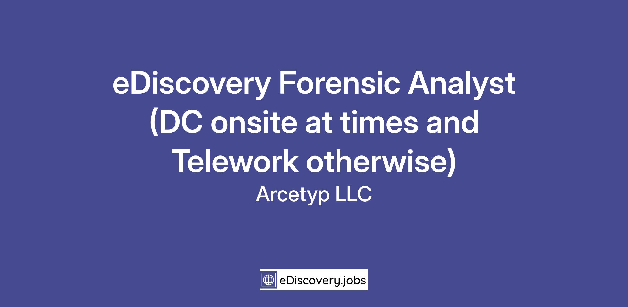 For a client engagement we have need to fill a long-term position for an eDiscovery Forensic Analyst. This position is primarily telework but will need to work onsite in Washington DC at certain times.