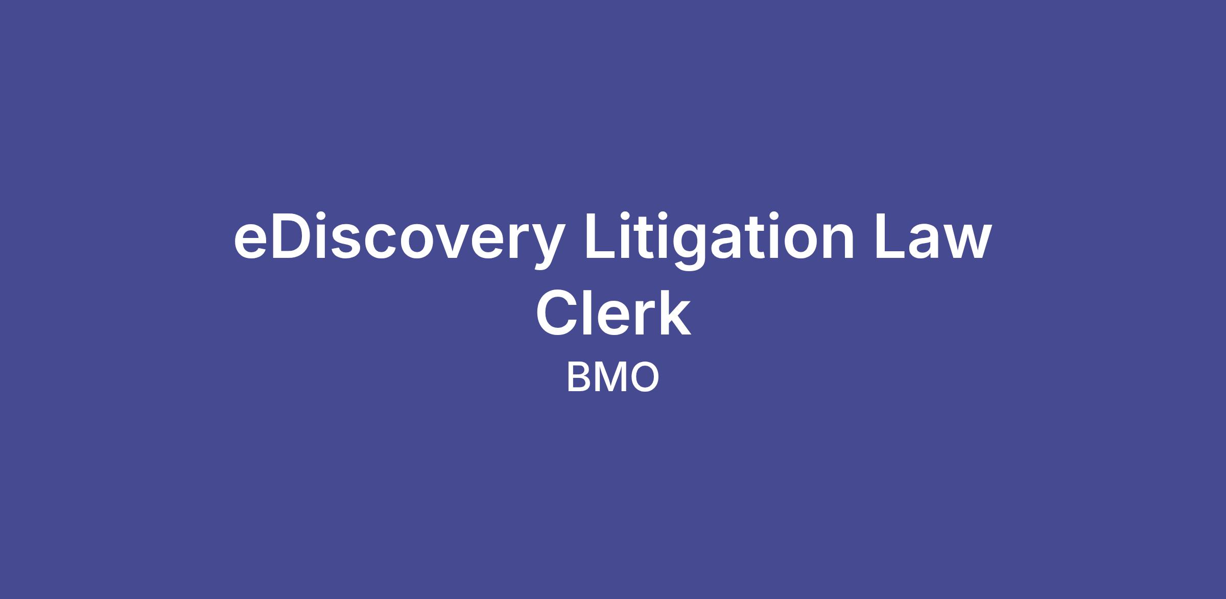 Collaborates with internal/ external stakeholders in order to deliver on BMO’s mandatory discovery obligations.