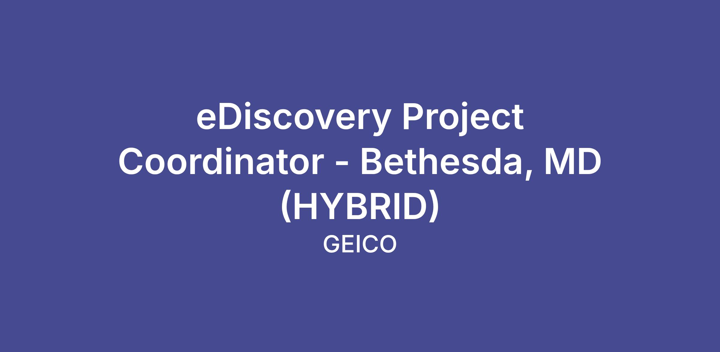 GEICO is seeking an experienced eDiscovery Project Coordinator to support the day-to-day management of electronic discovery matters within our Legal Operations team. You will serve as a hands-on project driver across the EDRM lifecycle — from legal hold issuance through collection, processing, review, and production — working closely with attorneys, paralegals, outside counsel, and our Legal Technology team.