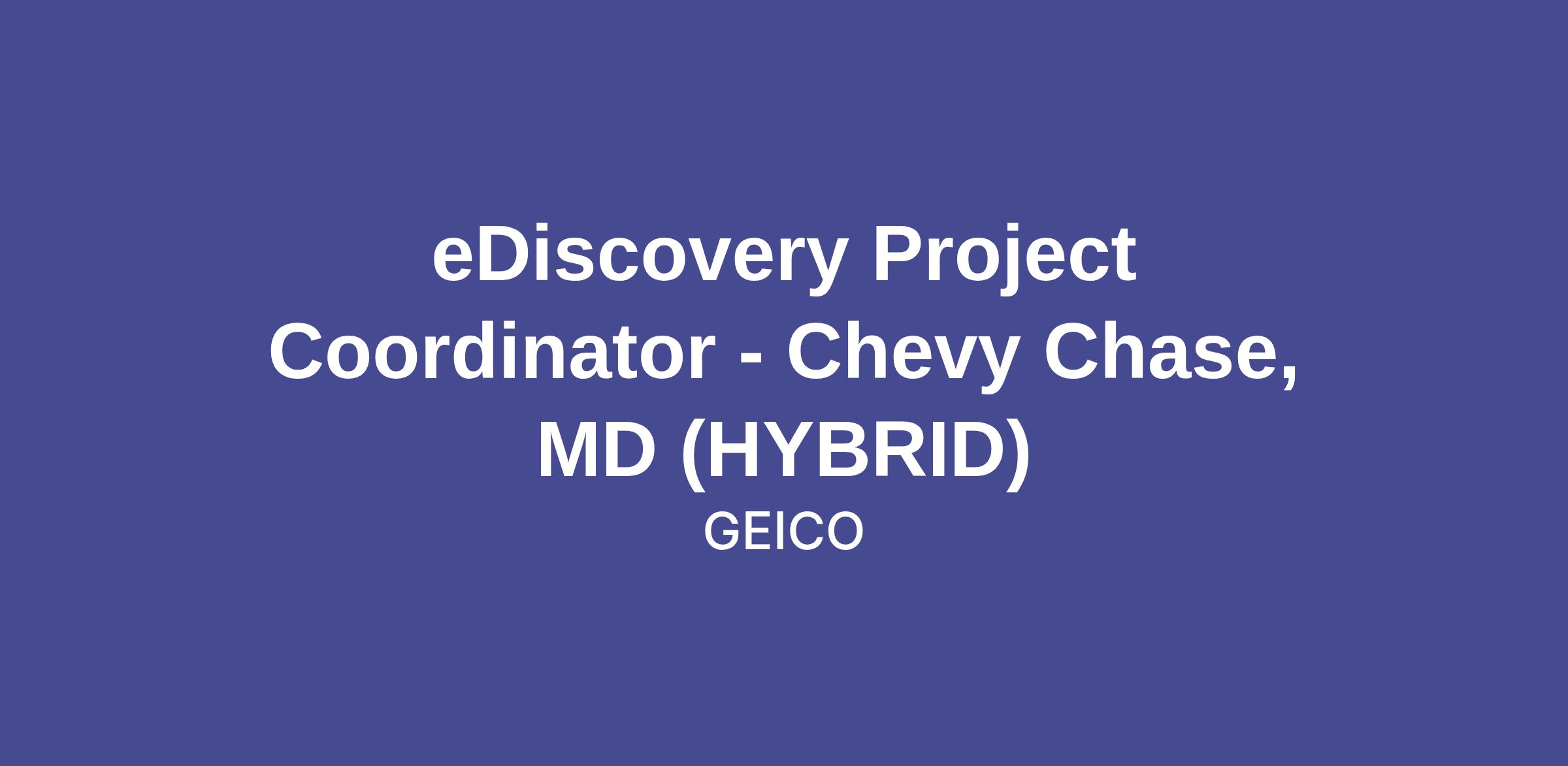 GEICO is seeking an experienced eDiscovery Project Coordinator to support the day-to-day management of electronic discovery matters within our Legal Operations team. You will serve as a hands-on project driver across the EDRM lifecycle — from legal hold issuance through collection, processing, review, and production — working closely with attorneys, paralegals, outside counsel, and our Legal Technology team.