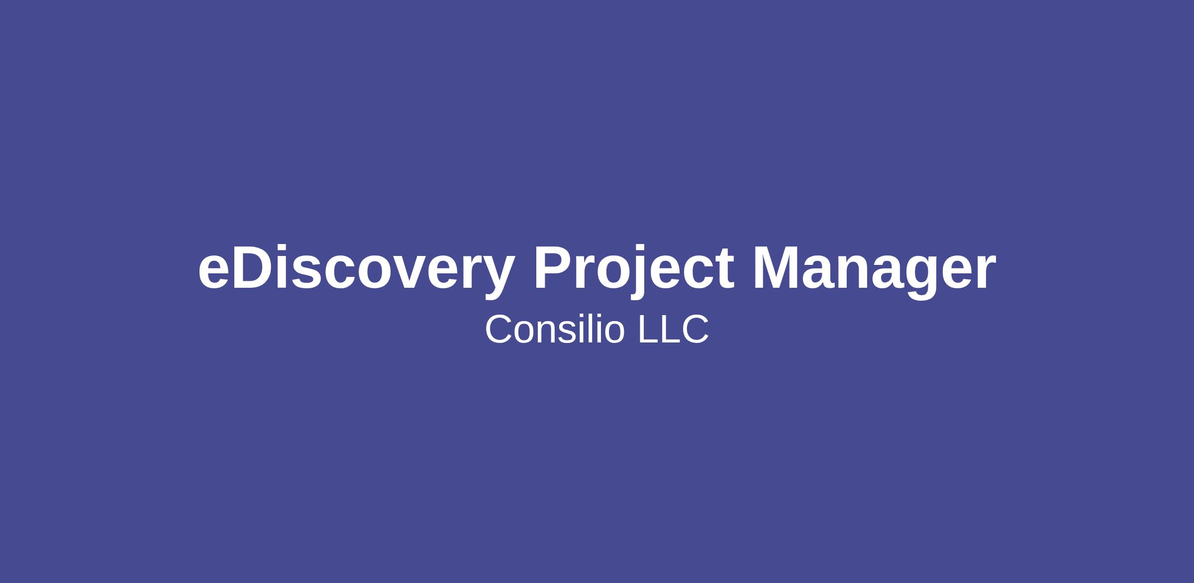Consilio, LLC is an EEO/Affirmative Action Employer and does not discriminate on the basis of race, color, religion, sex, sexual orientation, gender identity, national origin, protected veteran status, disability or any other legally protected status.