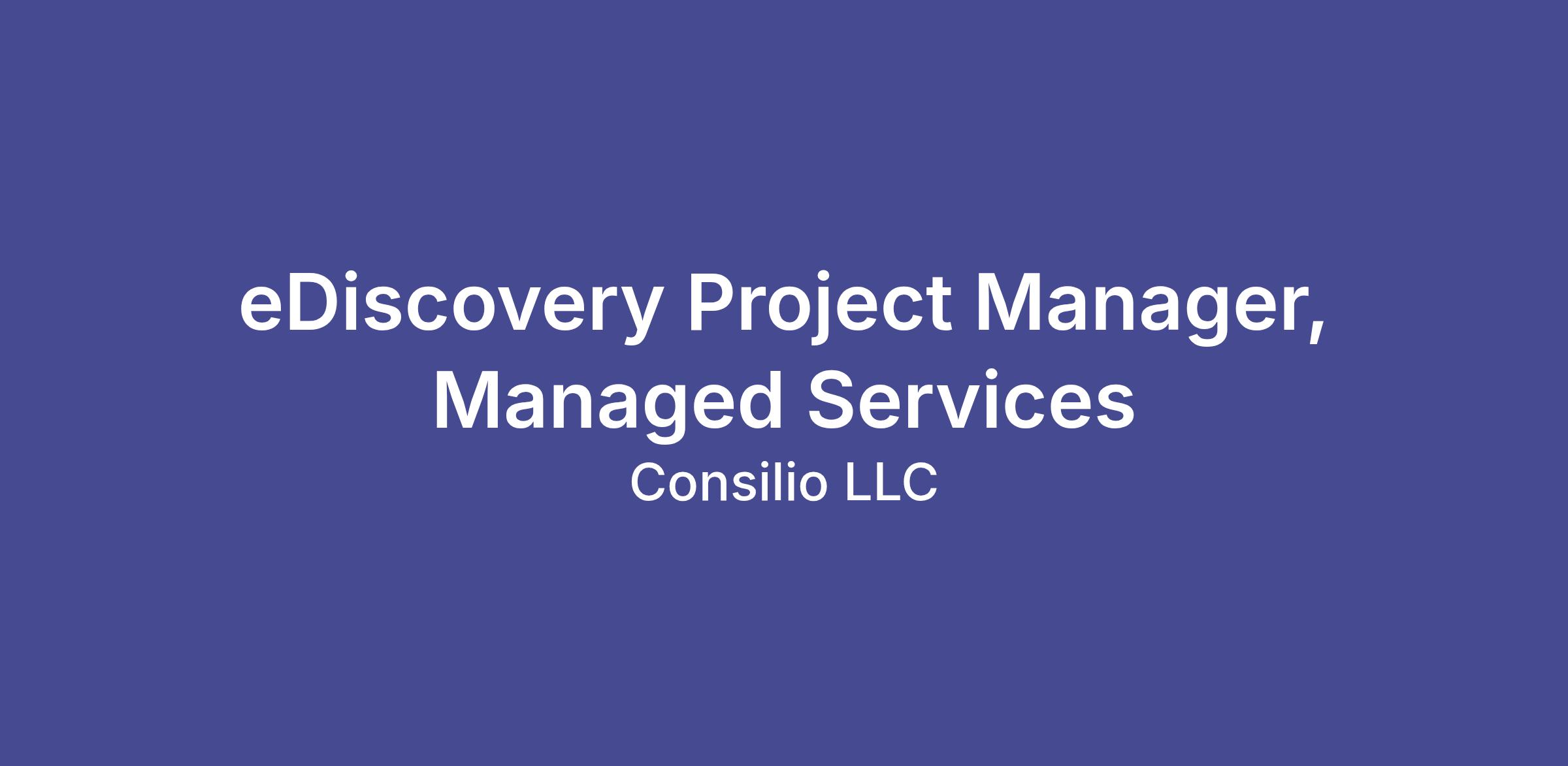 Consilio, LLC is an EEO/Affirmative Action Employer and does not discriminate on the basis of race, color, religion, sex, sexual orientation, gender identity, national origin, protected veteran status, disability or any other legally protected status.